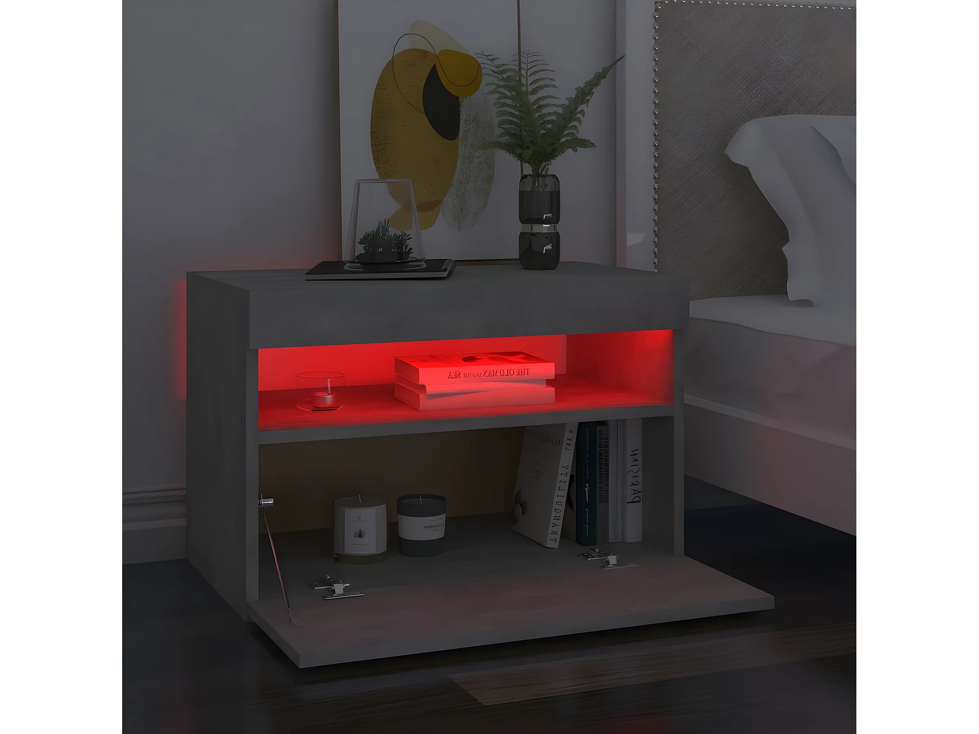 Nachttisch Nachtschrank mit LED-Leuchten Betongrau 60x35x40 cm -RN16238