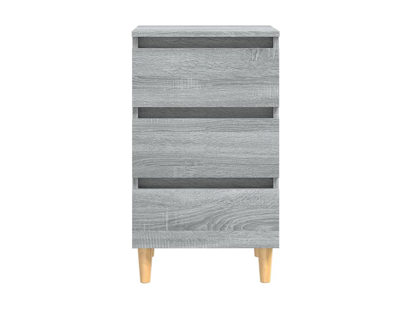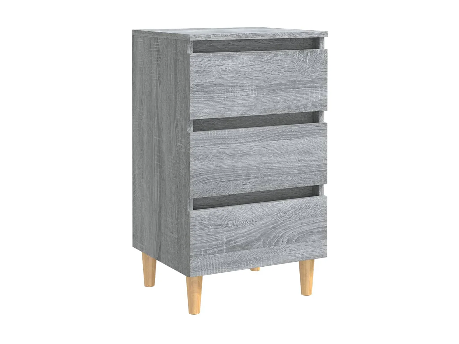 Nachttisch Nachtschrank mit Massivholz-Beinen Grau Sonoma 40x35x69 cm -RN98360