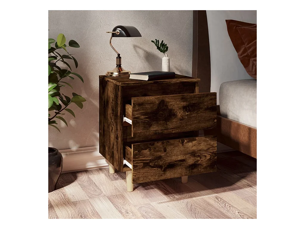 Nachttisch Nachtschrank mit Massivholz-Beinen Räuchereiche 40x35x50 cm -RN61926