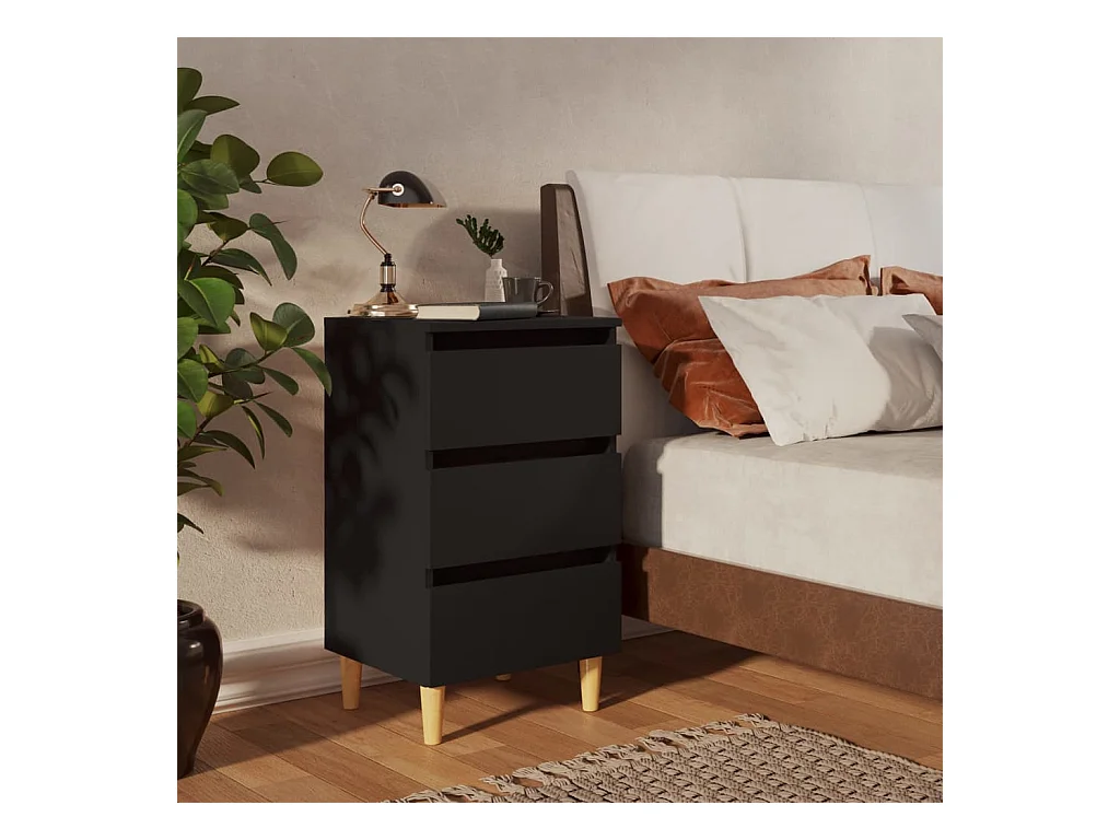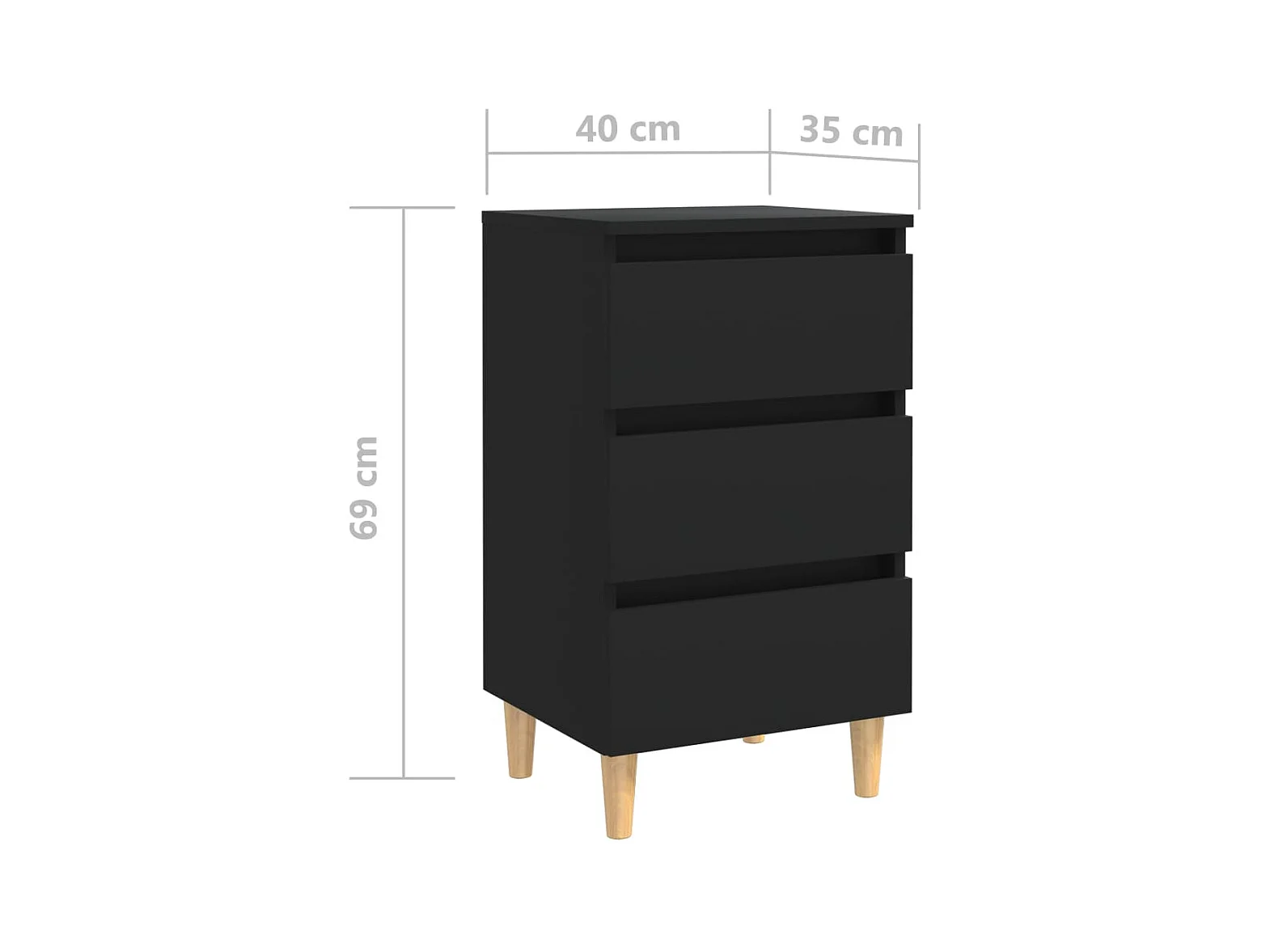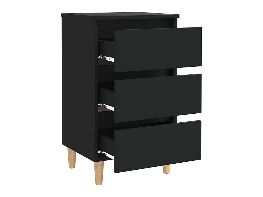 Nachttisch Nachtschrank mit Massivholz-Beinen Schwarz 40x35x69 cm -RN74510