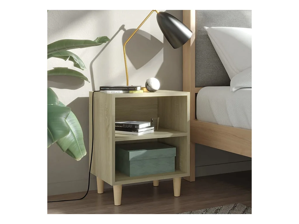 Nachttisch Nachtschrank mit Massivholz-Beinen Sonoma-Eiche 40x30x50cm -RN69850