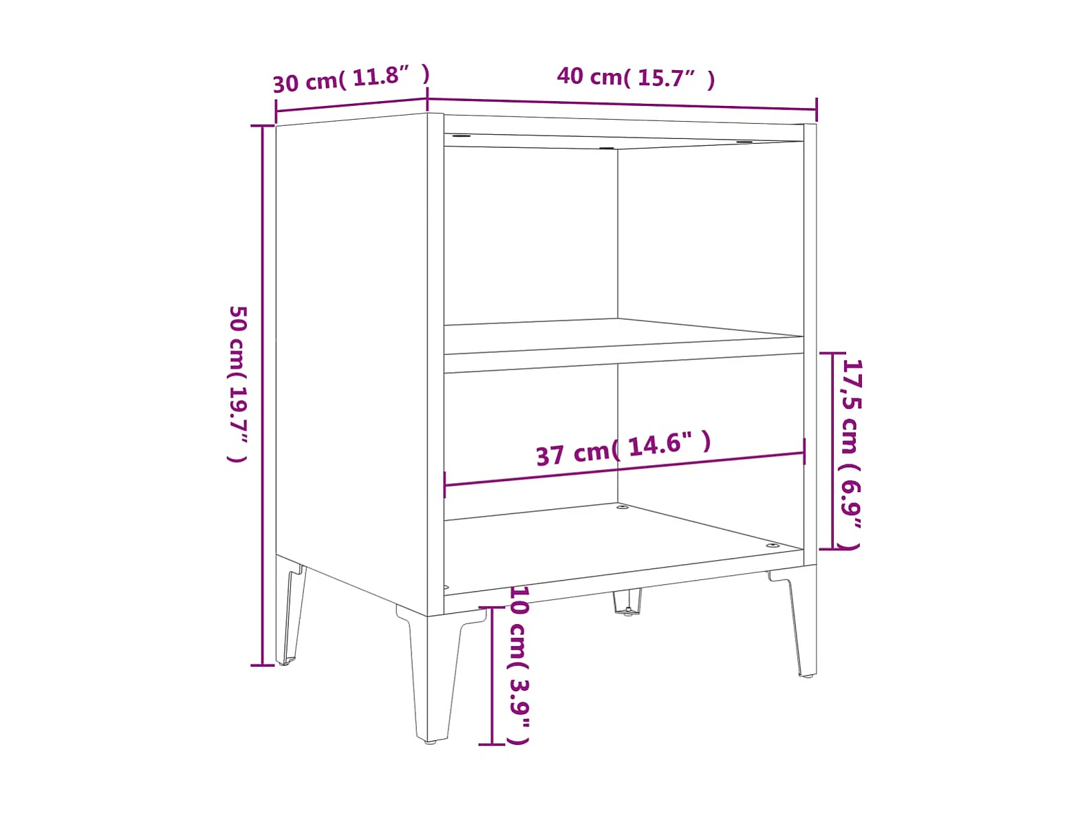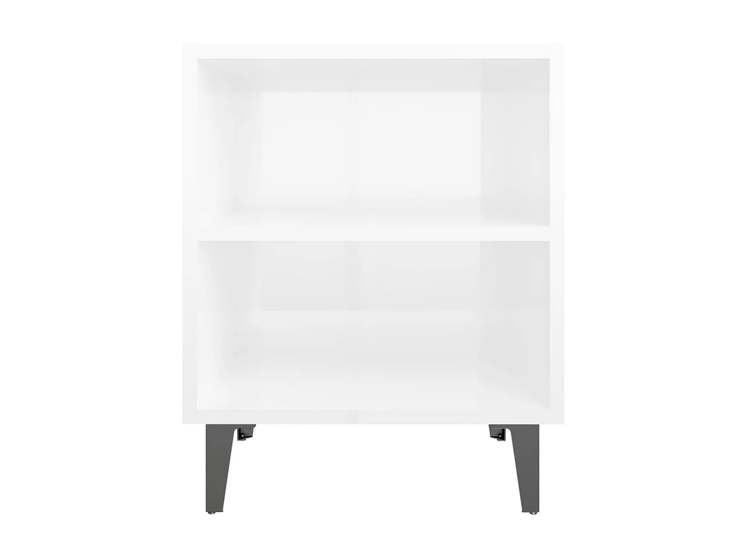 Nachttisch Nachtschrank mit Metallbeinen Hochglanz-Weiß 40x30x50 cm -RN73943
