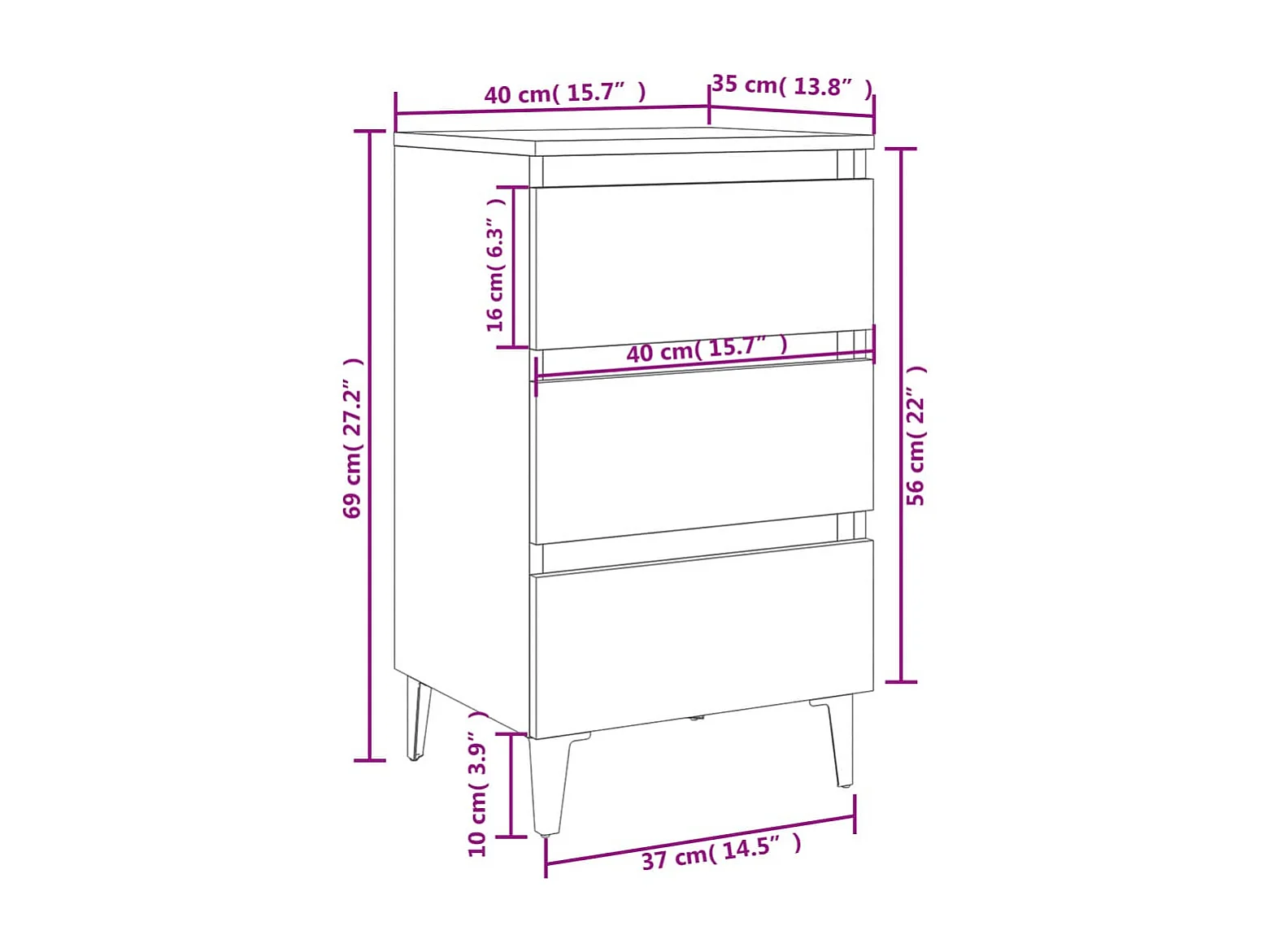 Nachttisch Nachtschrank mit Metallbeinen Weiß 40x35x69 cm -RN18799