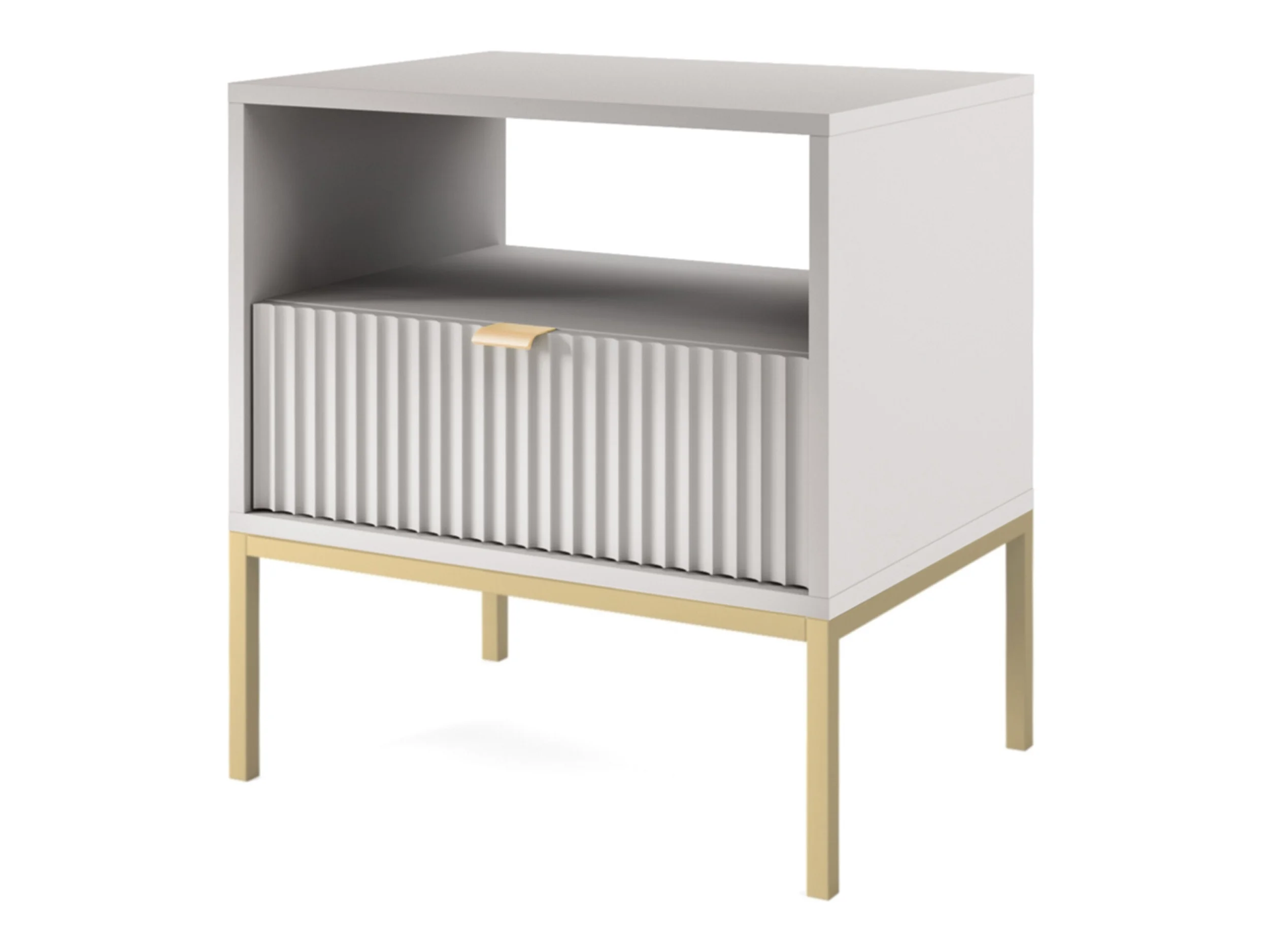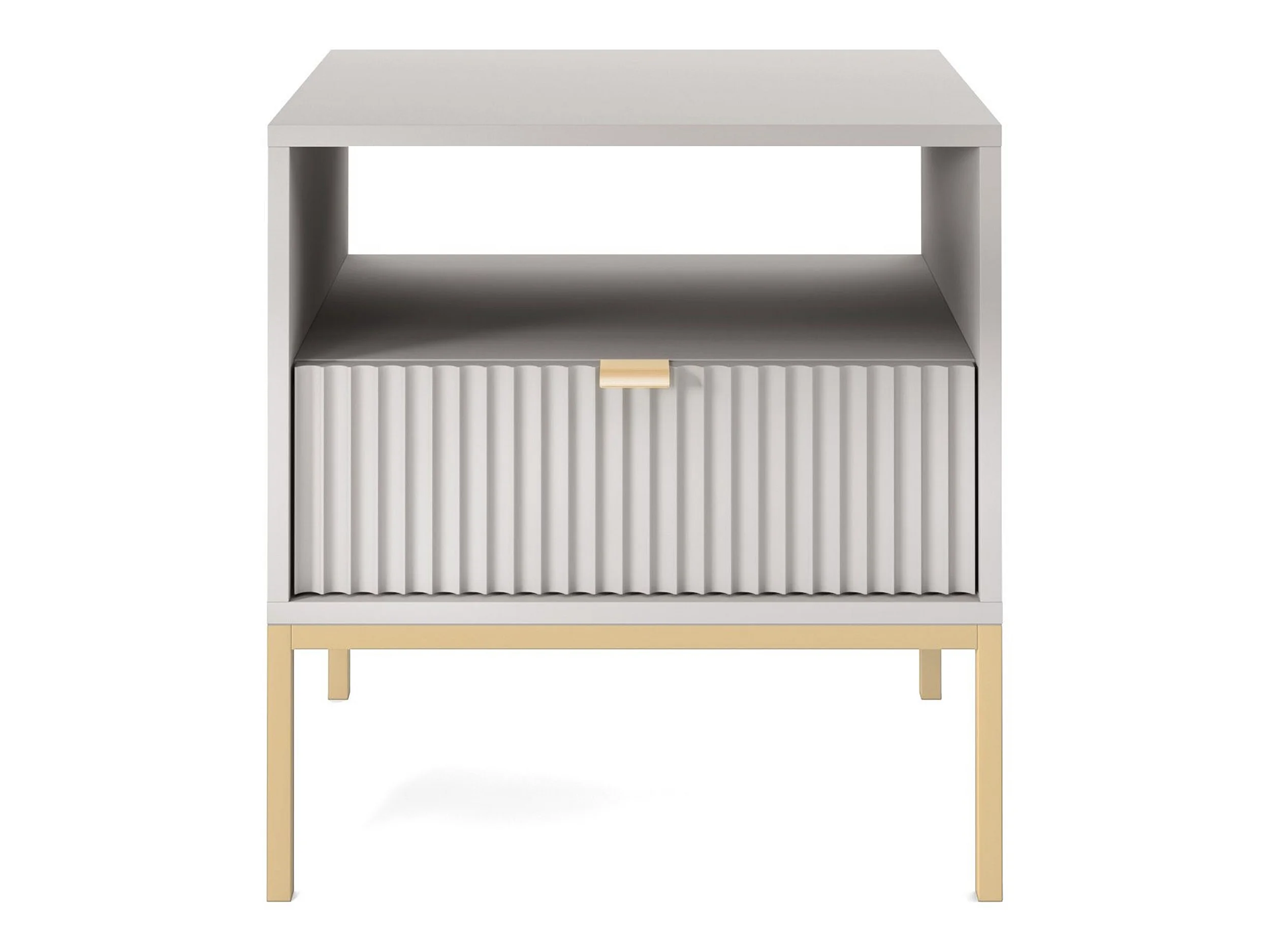 Nachttisch Nachtschrank mit Schublade - Grau mit Strukturfront und goldenen Metallbeinen - VELLORE