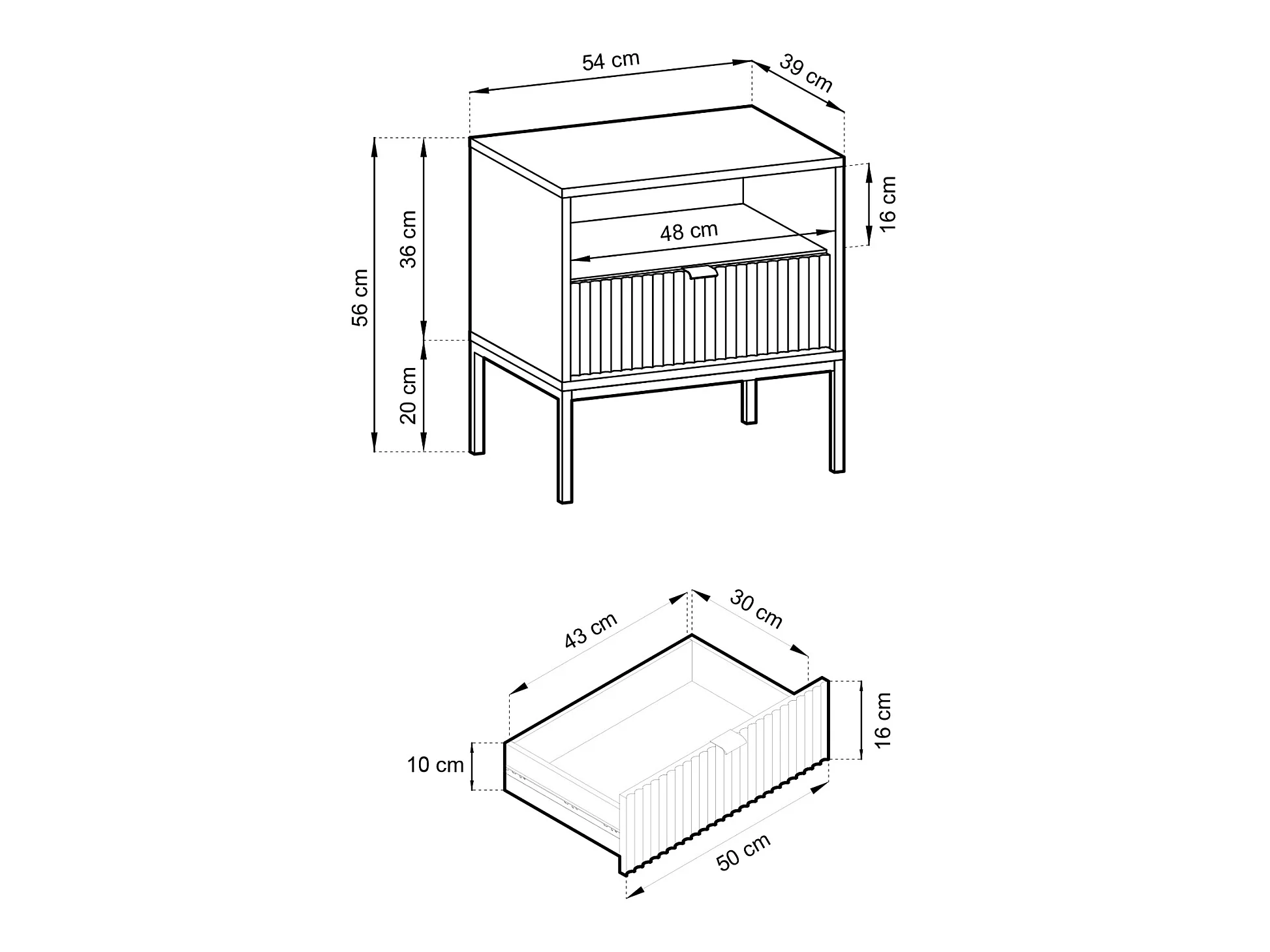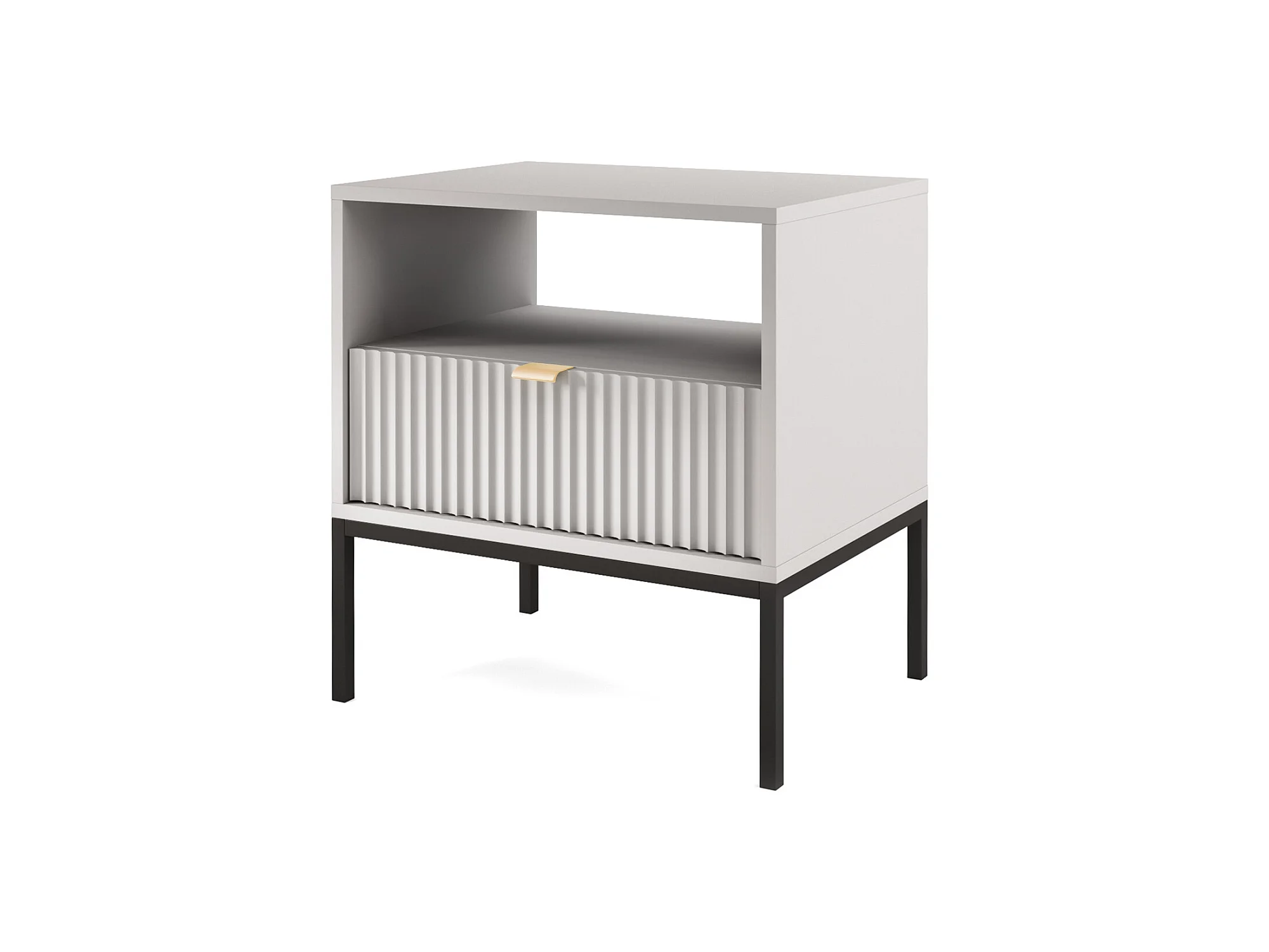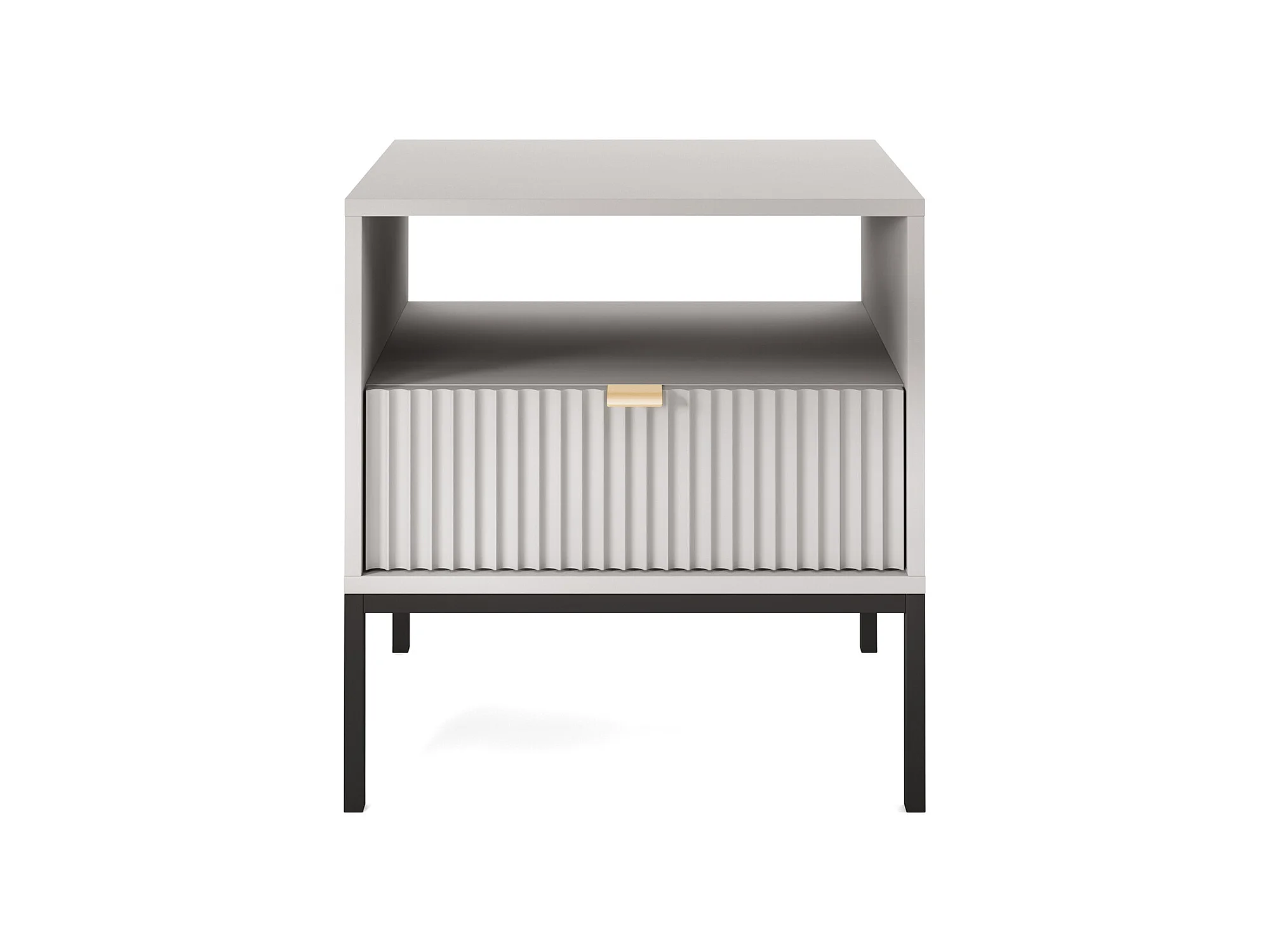 Nachttisch Nachtschrank mit Schublade - Grau mit Strukturfront und Metallbeinen - VELLORE