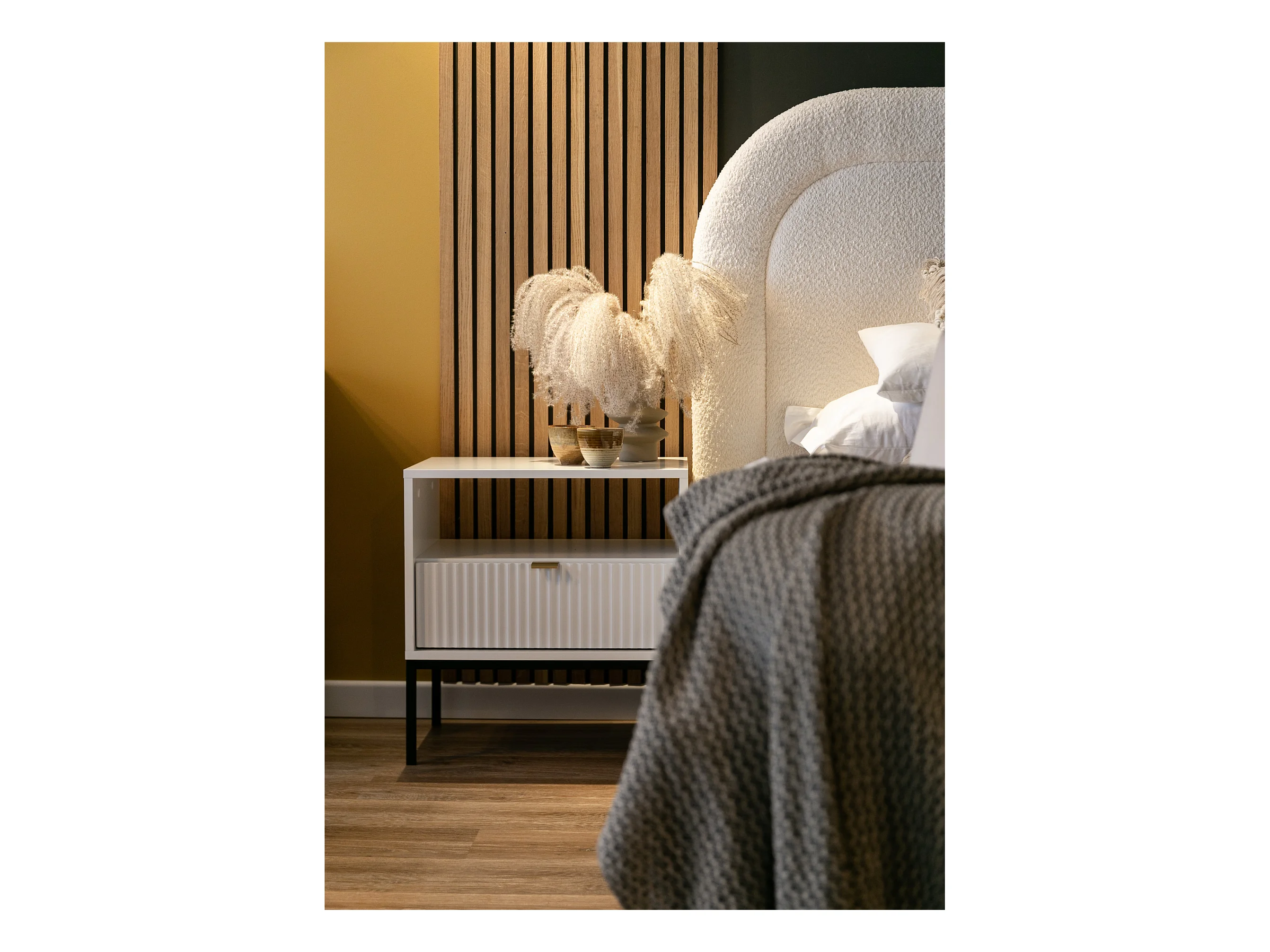 Nachttisch Nachtschrank mit Schublade - Weiß mit Strukturfront und Metallbeinen - VELLORE