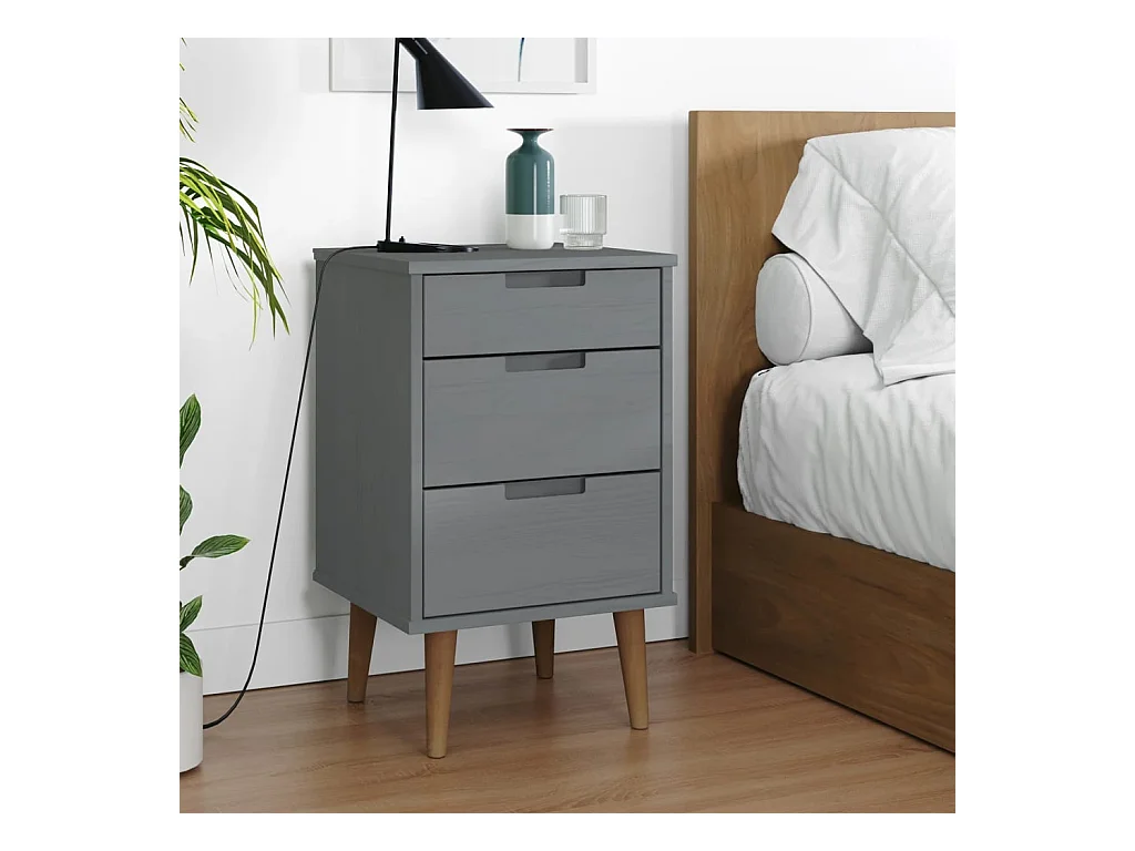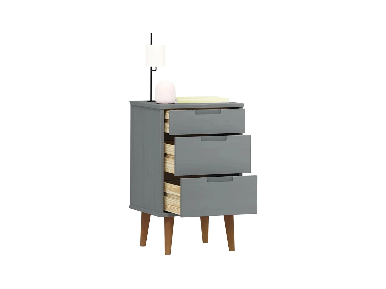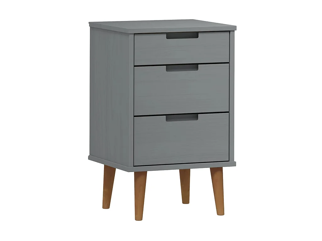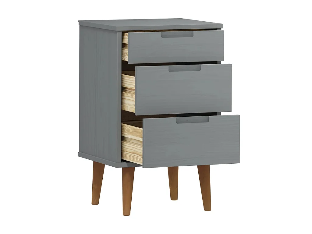 Nachttisch Nachtschrank MOLDE Grau 40x35x65 cm Massivholz Kiefer -RN96432