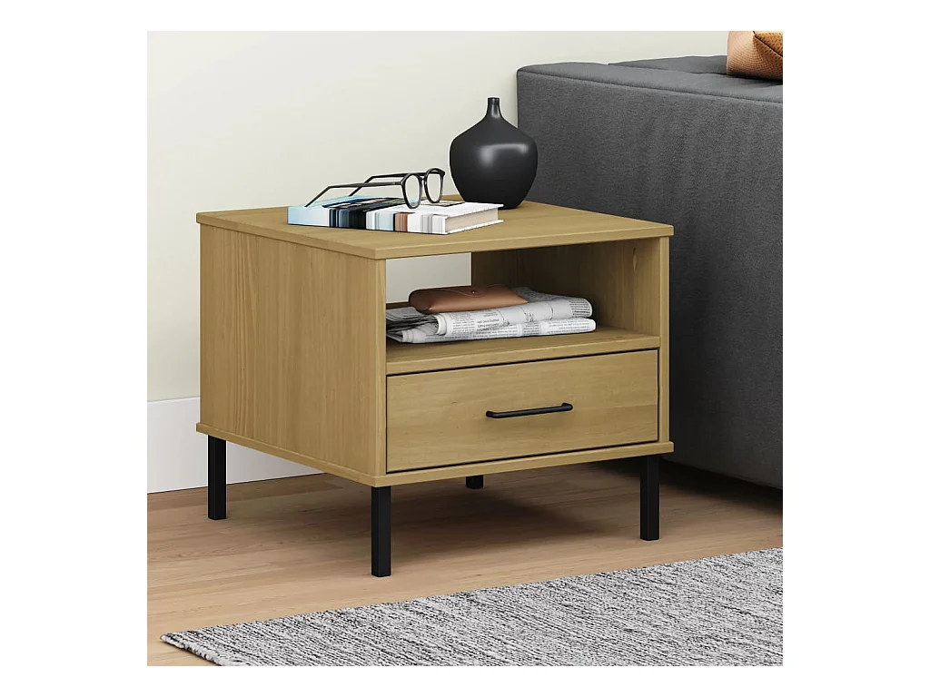 Nachttisch Nachtschrank OSLO mit Metallbeinen Braun Massivholz Kiefer -RN42976