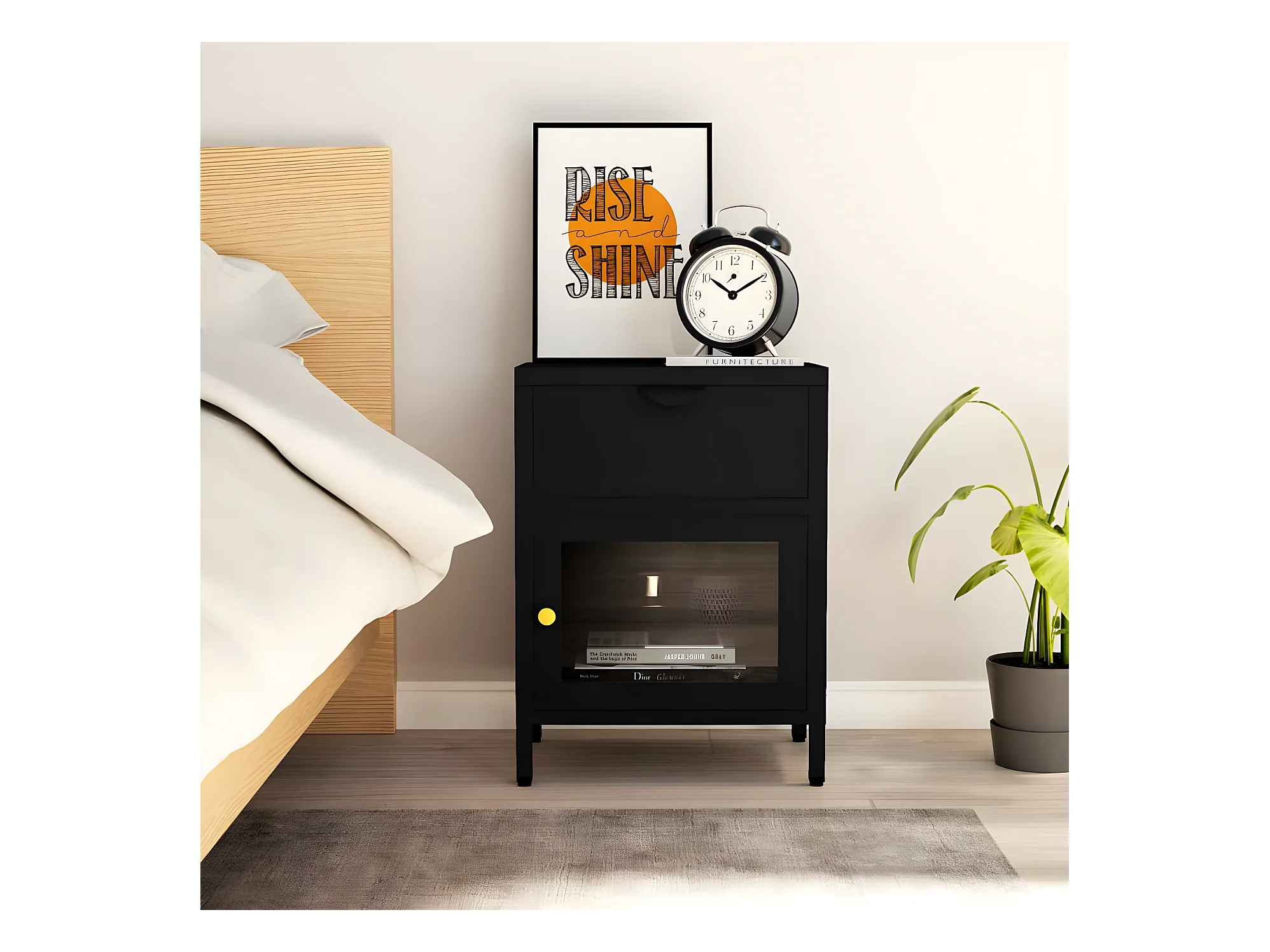 Nachttisch Nachtschrank Schwarz 40x30x54,5 cm Stahl und Glas -RN44773