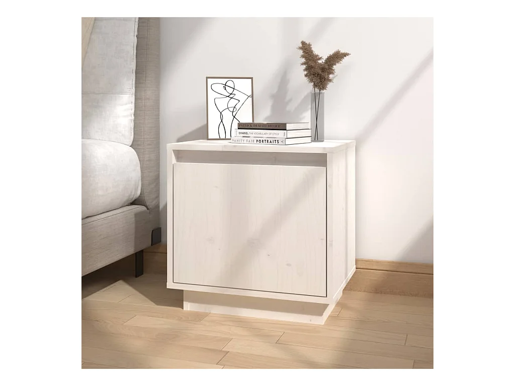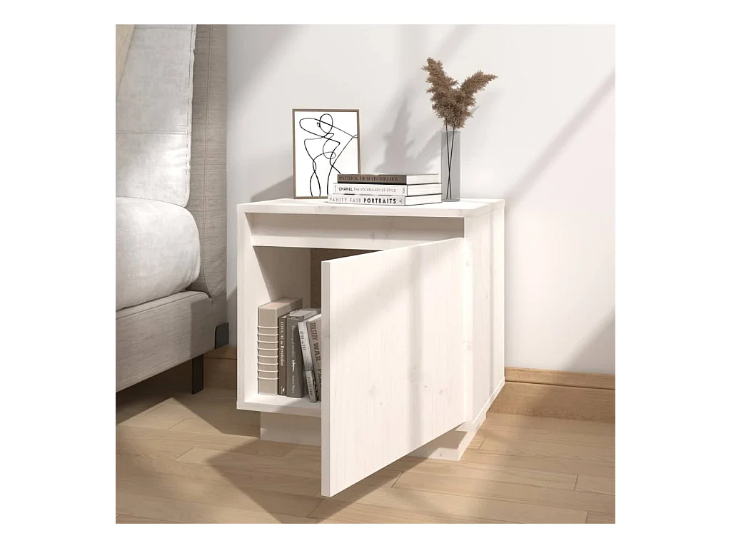 Nachttisch Nachtschrank Weiß 40x30x40 cm Massivholz Kiefer -RN27801