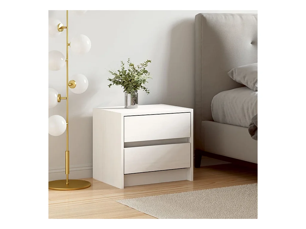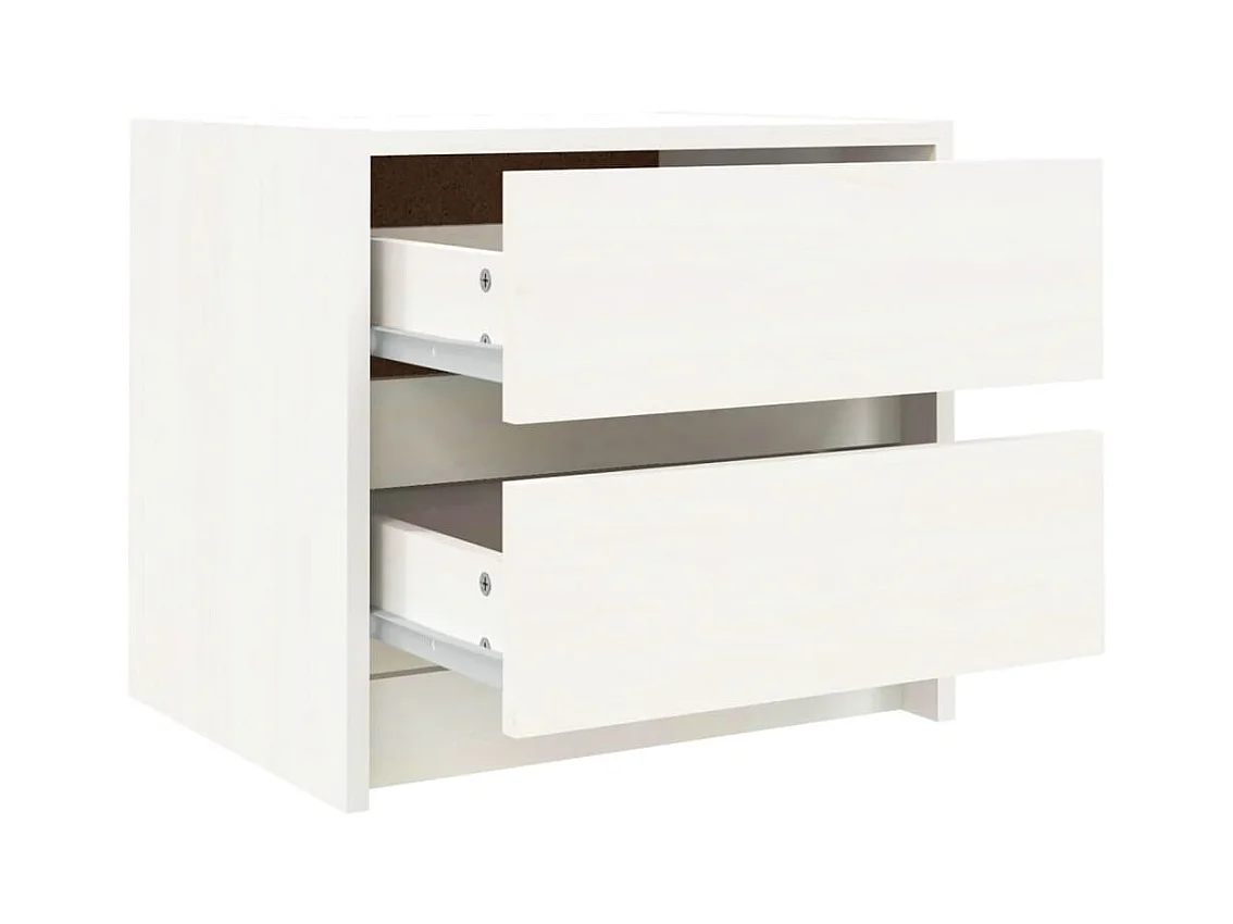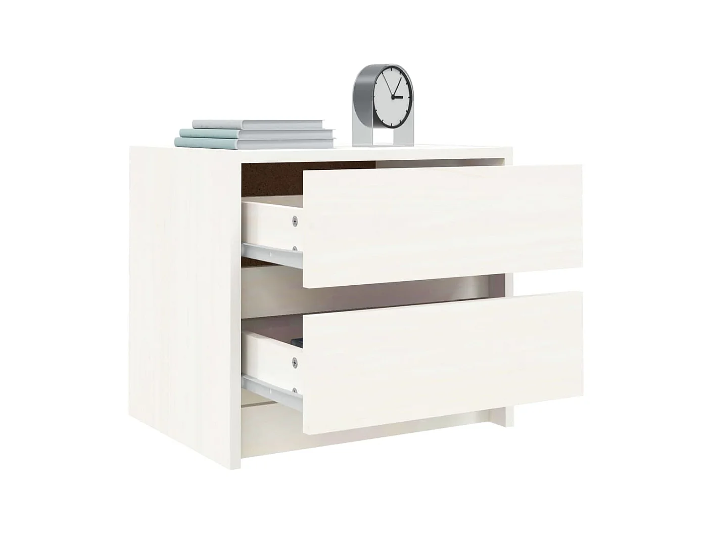 Nachttisch Nachtschrank Weiß 40x31x35,5 cm Massivholz Kiefer -RN28567