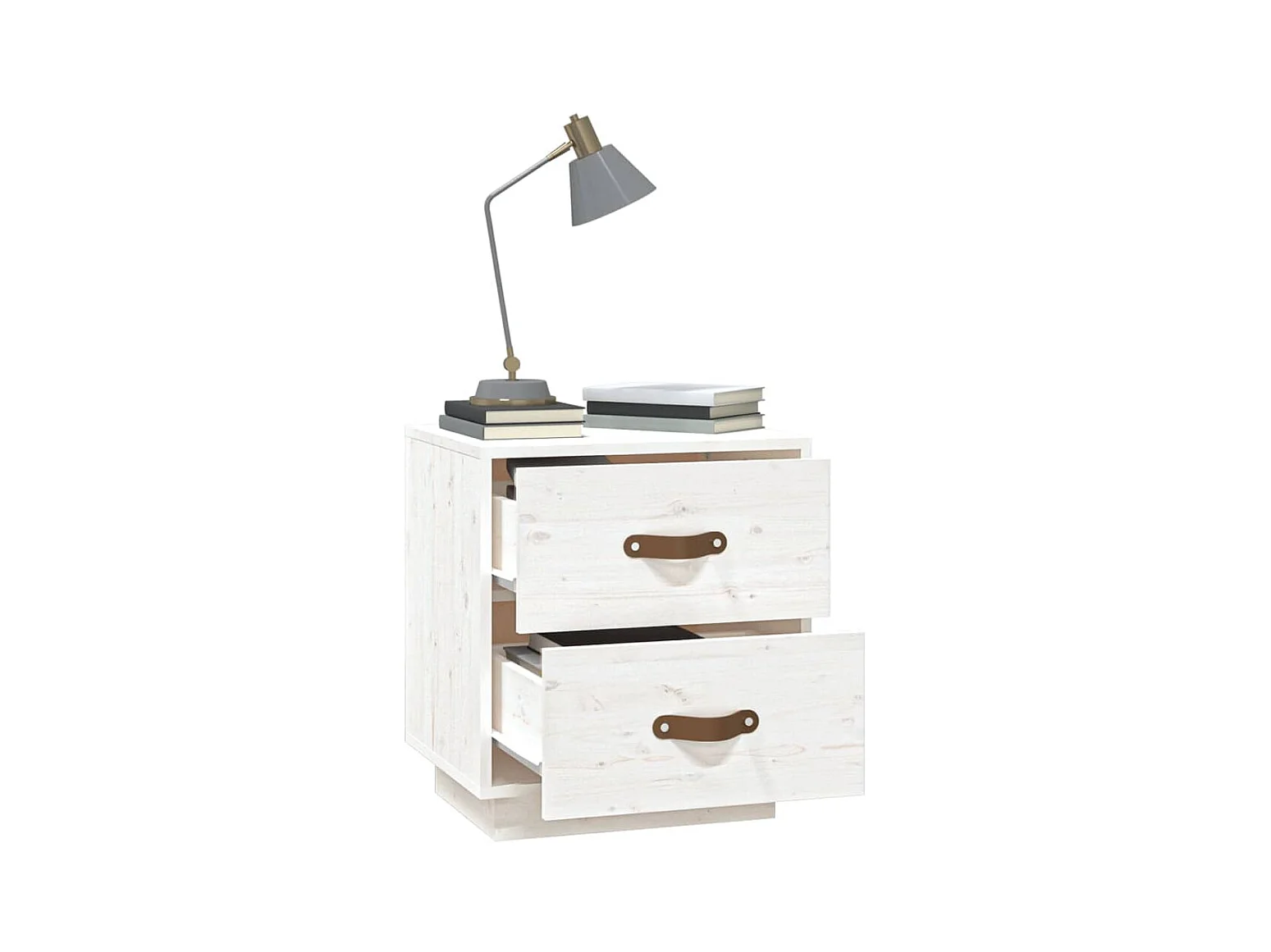 Nachttisch Nachtschrank Weiß 40x34x45 cm Massivholz Kiefer -RN61174