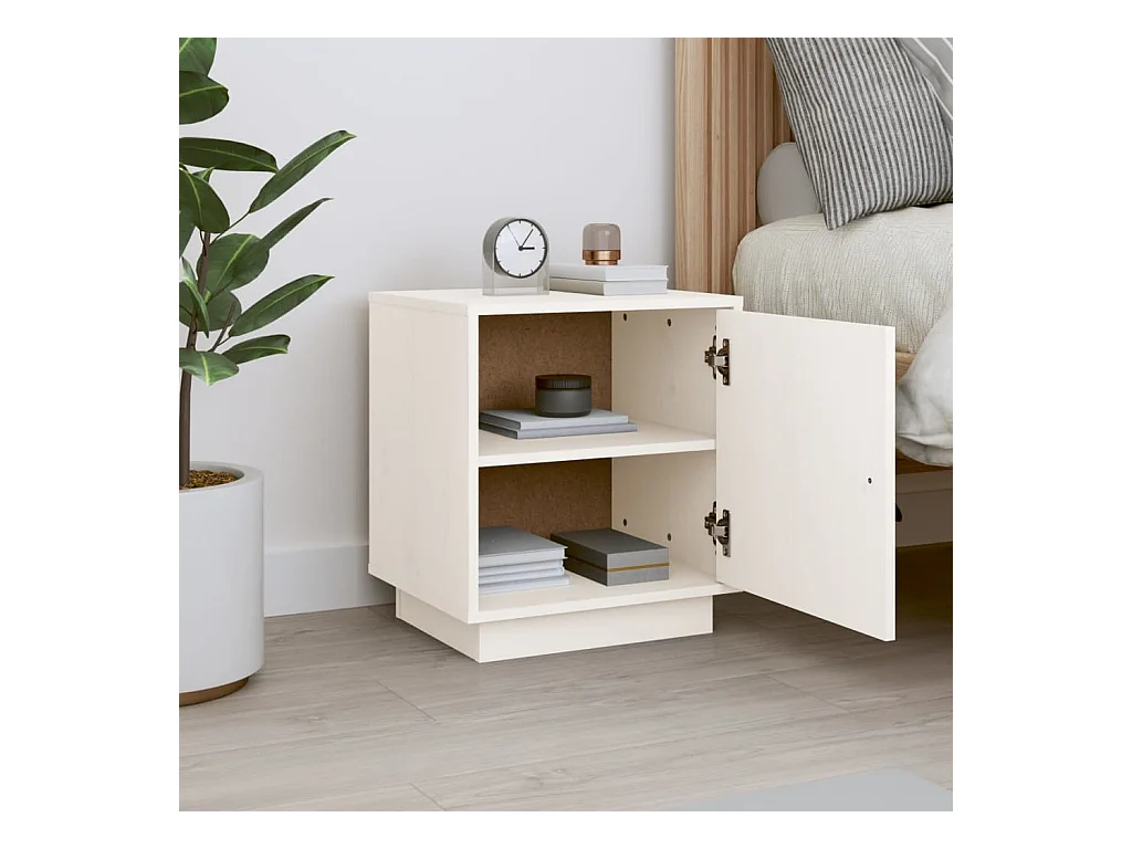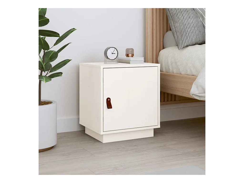 Nachttisch Nachtschrank Weiß 40x34x45 cm Massivholz Kiefer -RN80933