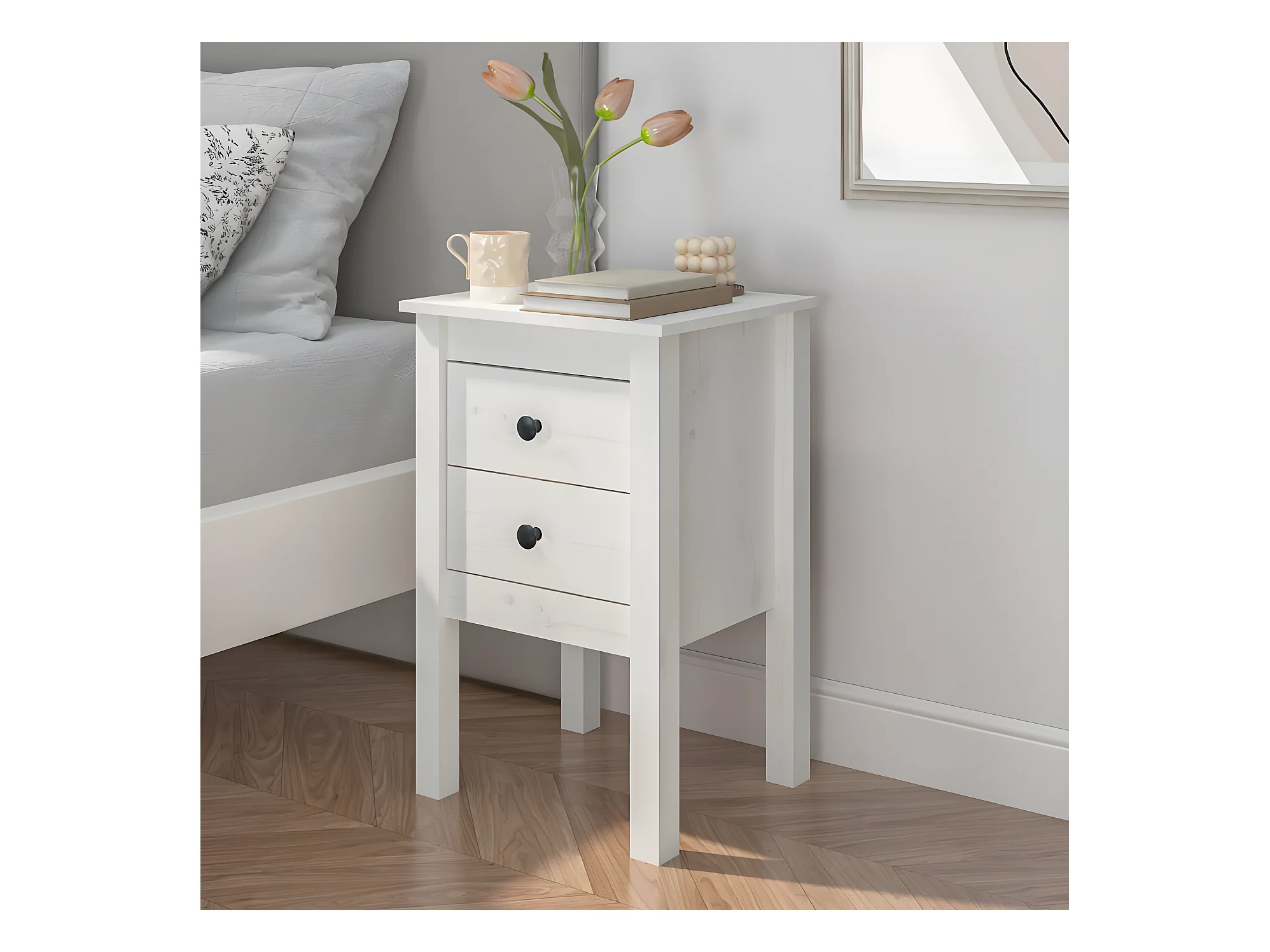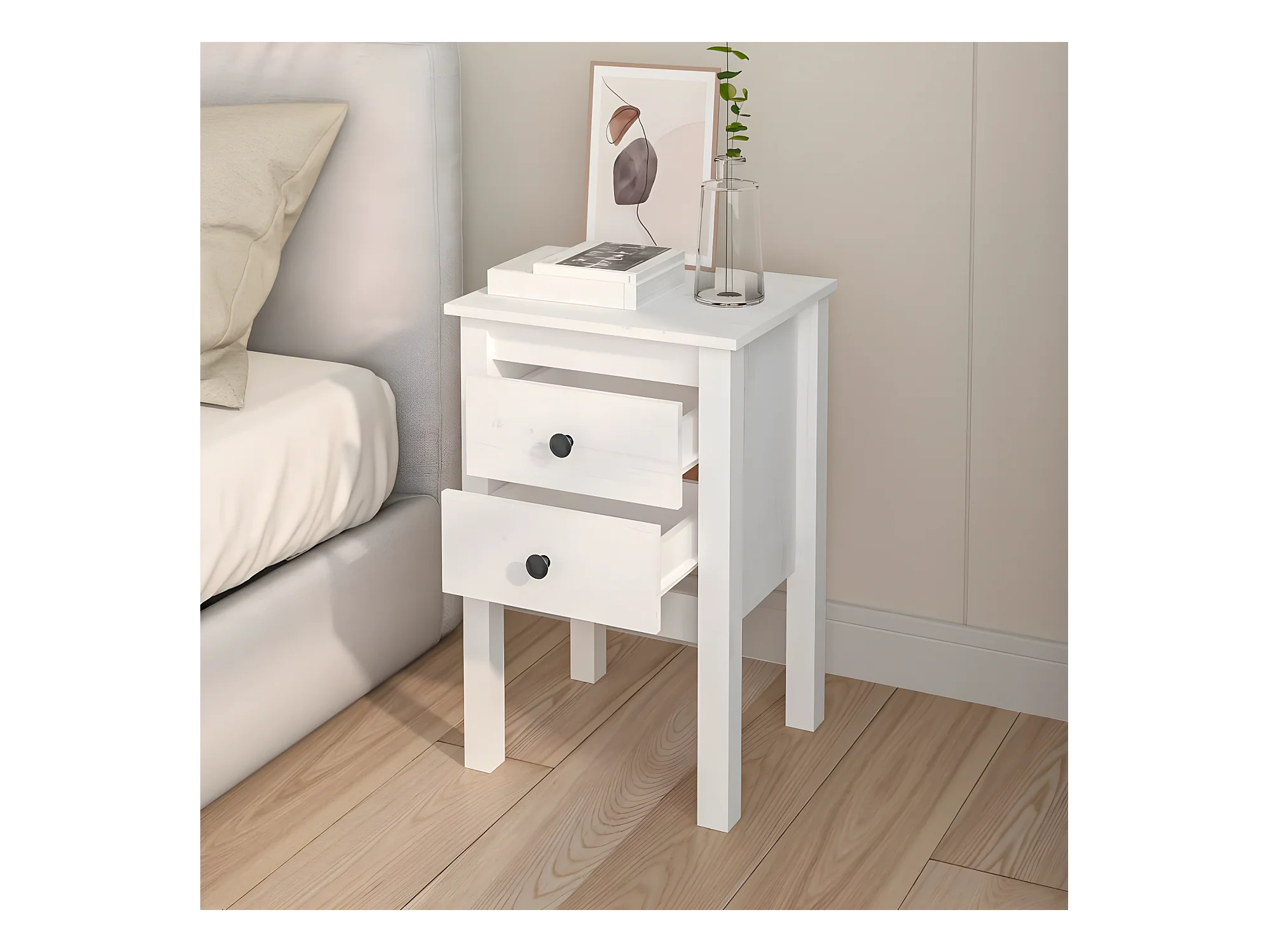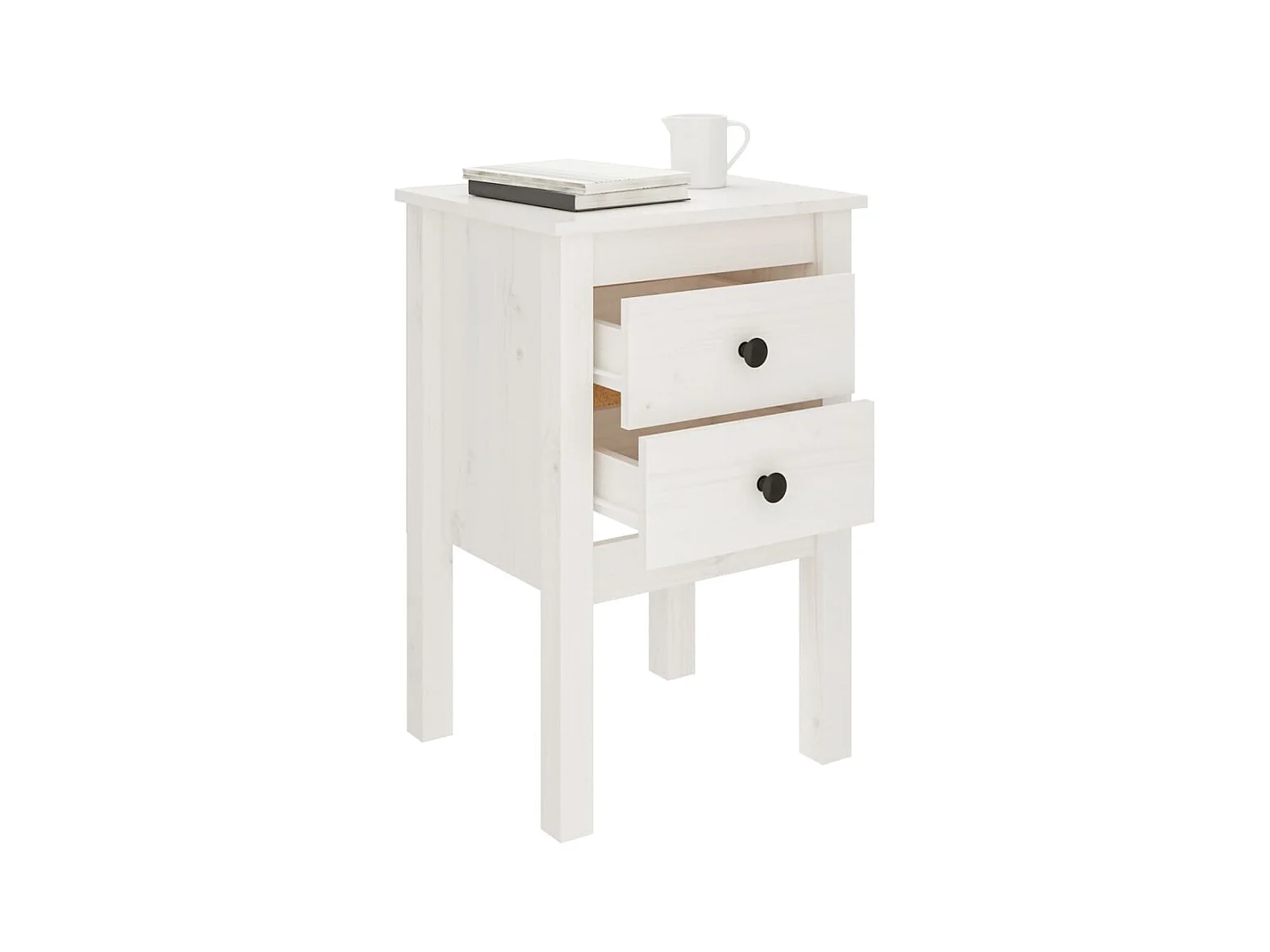 Nachttisch Nachtschrank Weiß 40x35x61,5 cm Massivholz Kiefer -RN15328