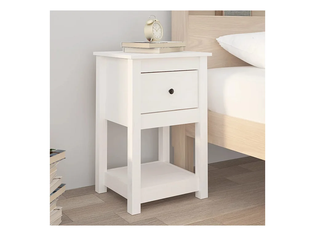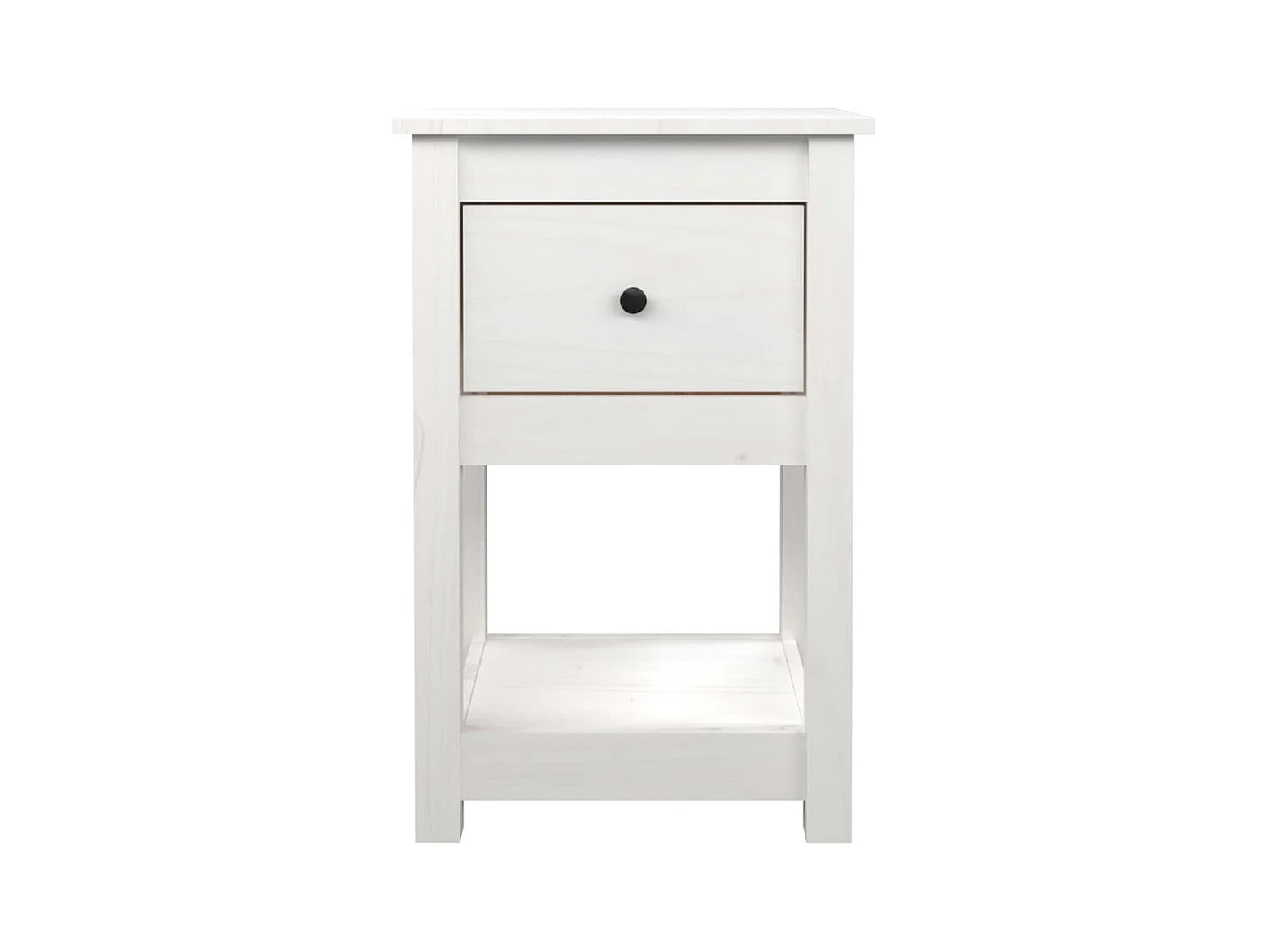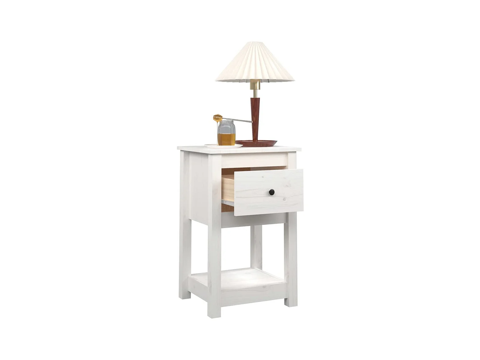 Nachttisch Nachtschrank Weiß 40x35x61,5 cm Massivholz Kiefer -RN41779