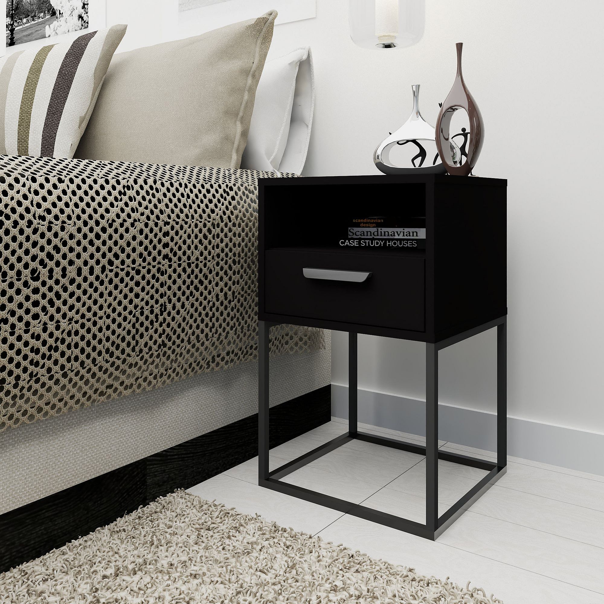 Nachttisch RECTUS schwarz, Maße 39x65x40 cm, optimaler Komfort