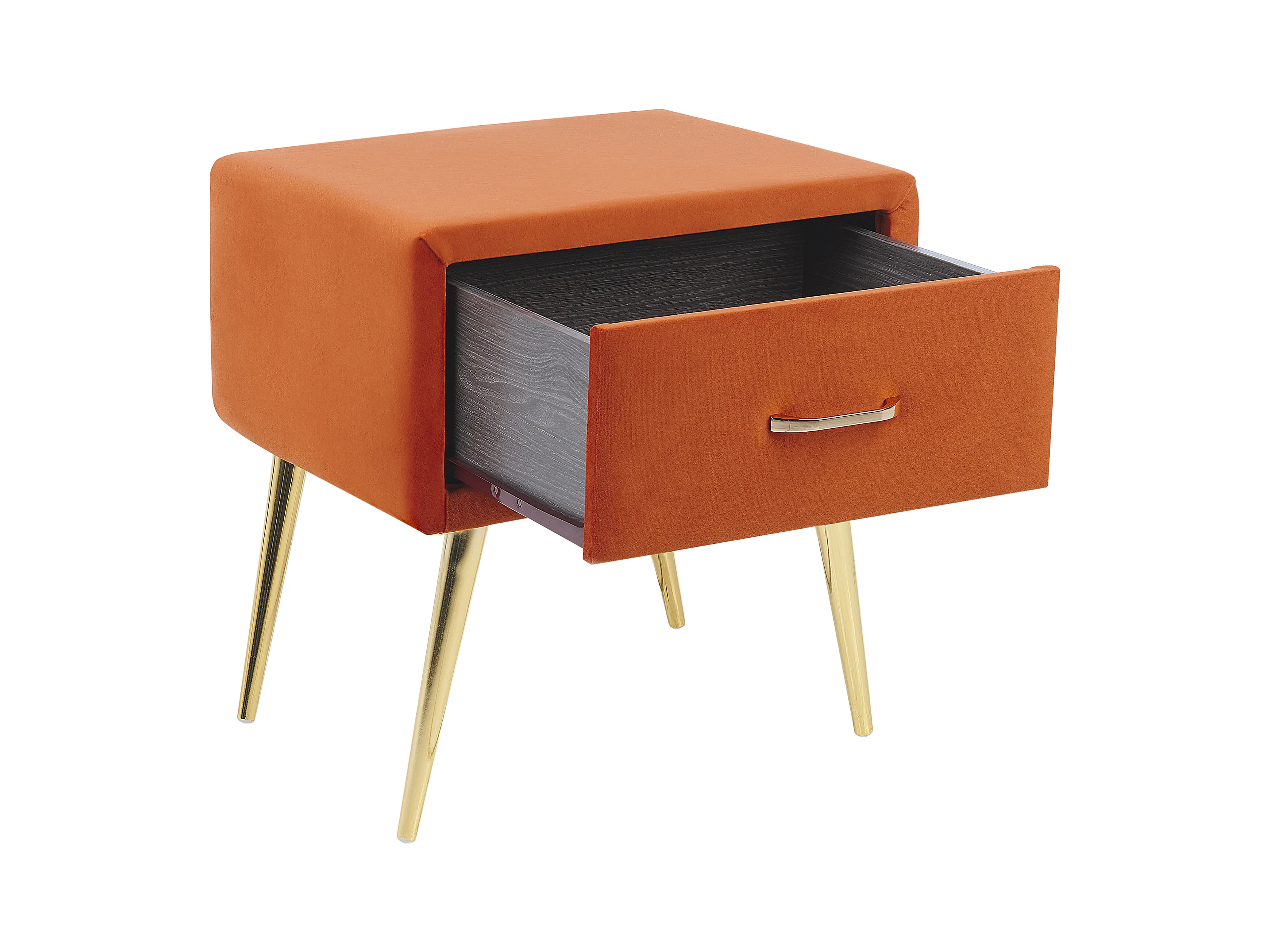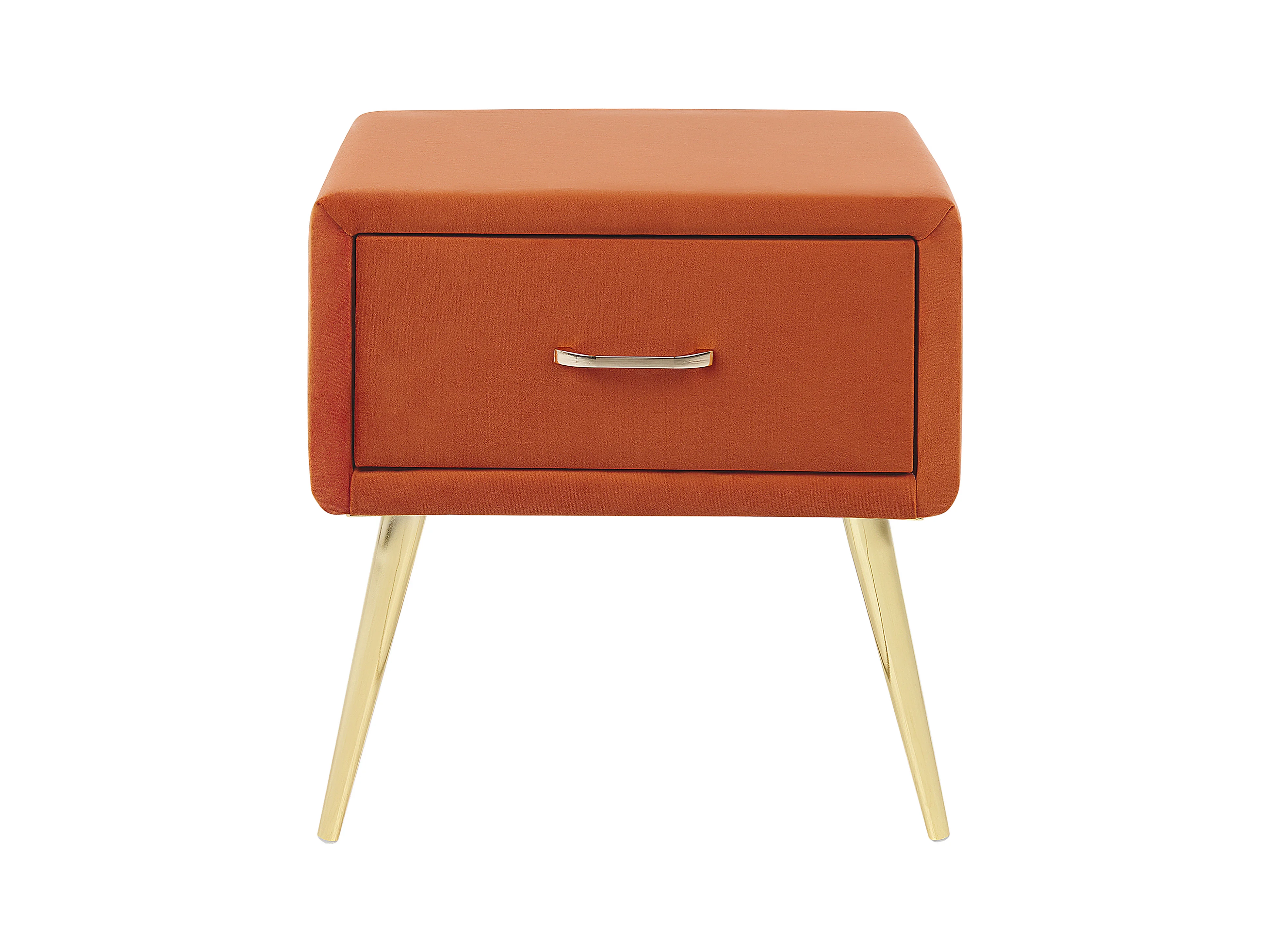 Nachttisch Samtstoff orange mit Schublade Metallgestell gold Modern Glam Flayat