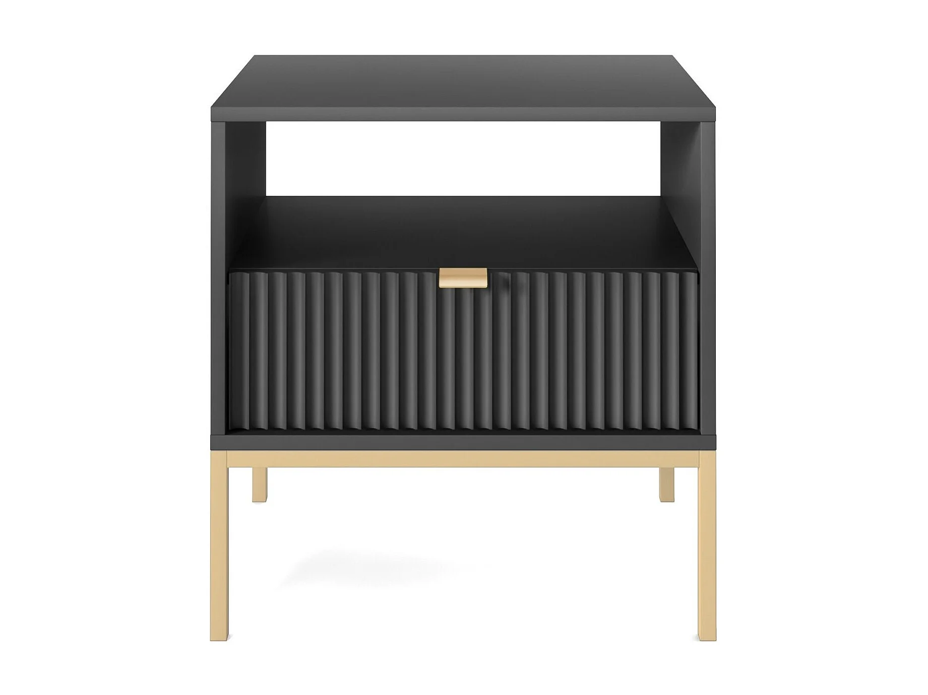 NACHTTISCH: Schwarz, Gold, 54 x 56 x 39 cm, goldene Griffe