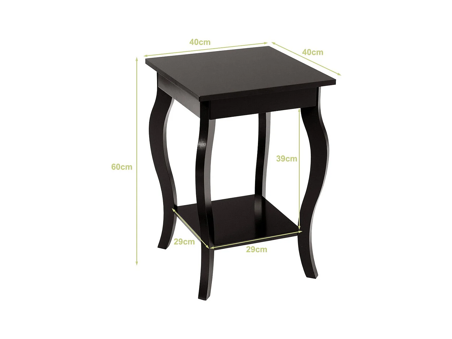 2er Set mit Elegante Beistelltische geschwungenen Beinen & 2 stufigen Ablagen für Wohnzimmer & Schlafzimmer Braun
