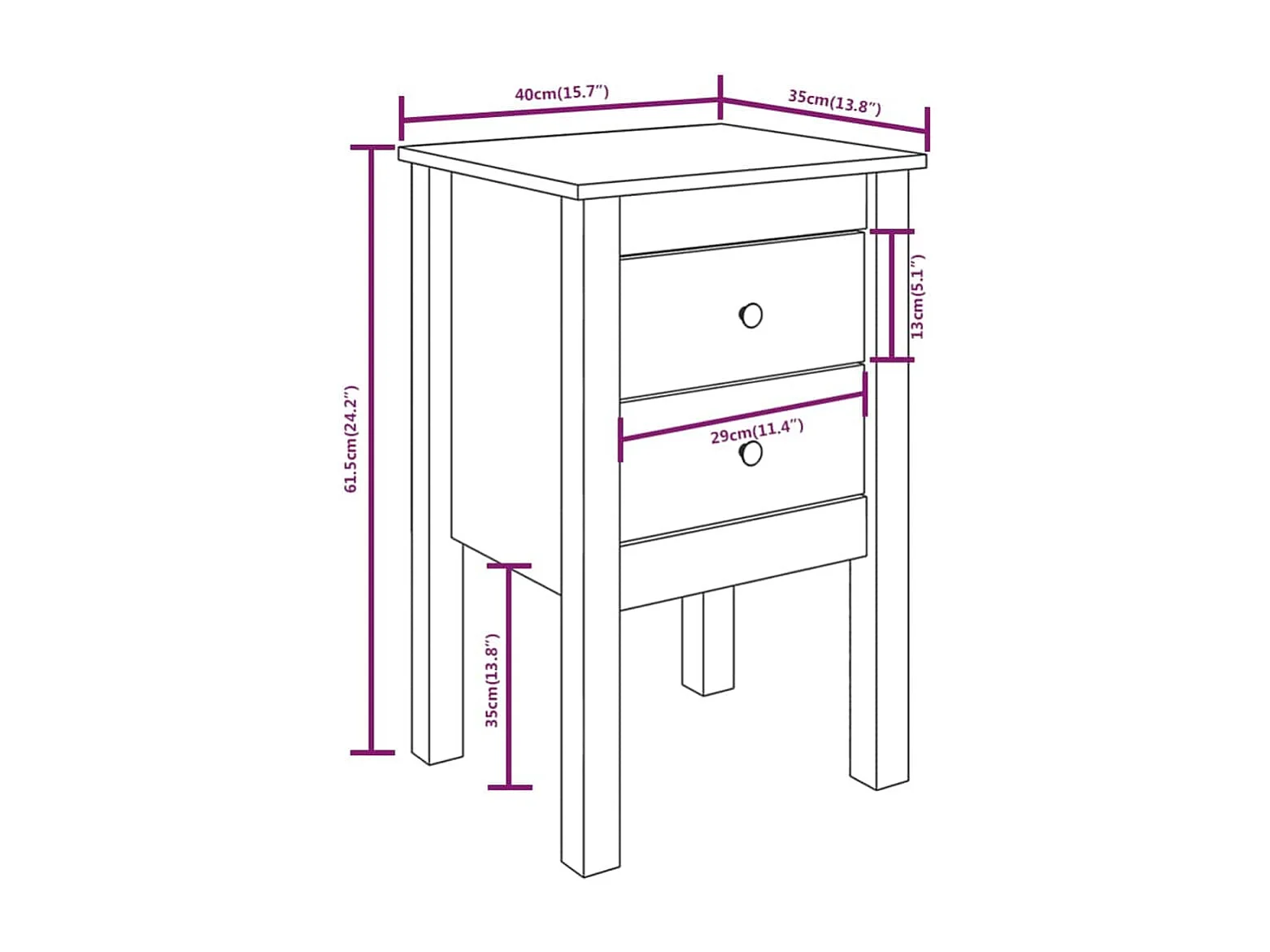Nachttisch Weiß 40x35x61,5 cm Massivholz Kiefer