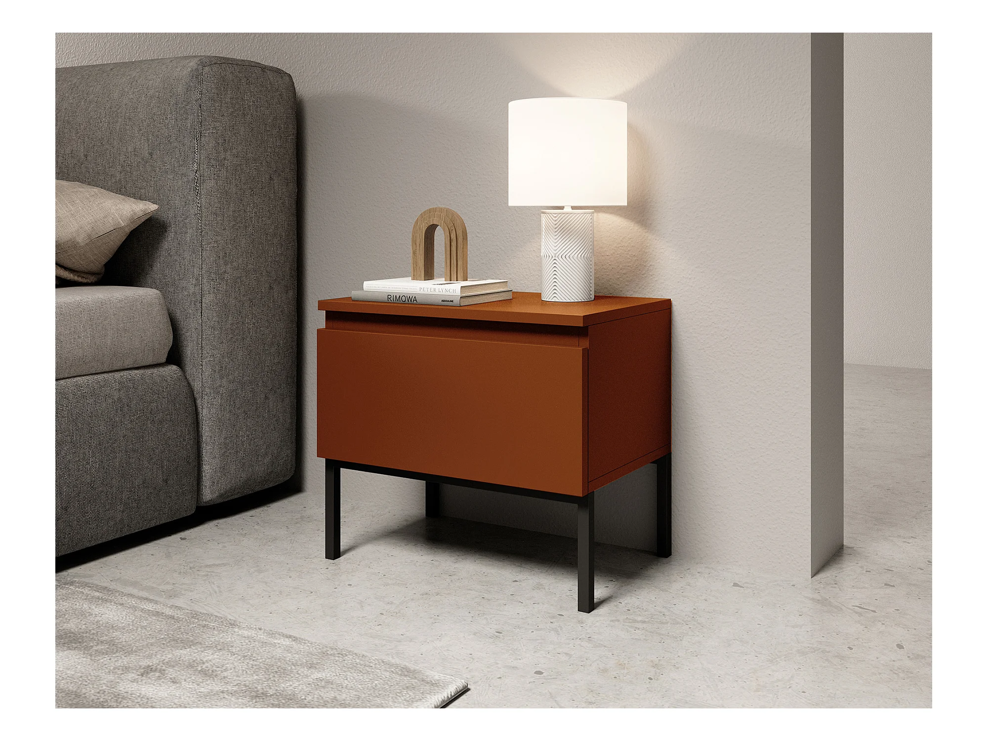 Nachttisch, Ziegelrot mit Metallbeinen - Bemmi