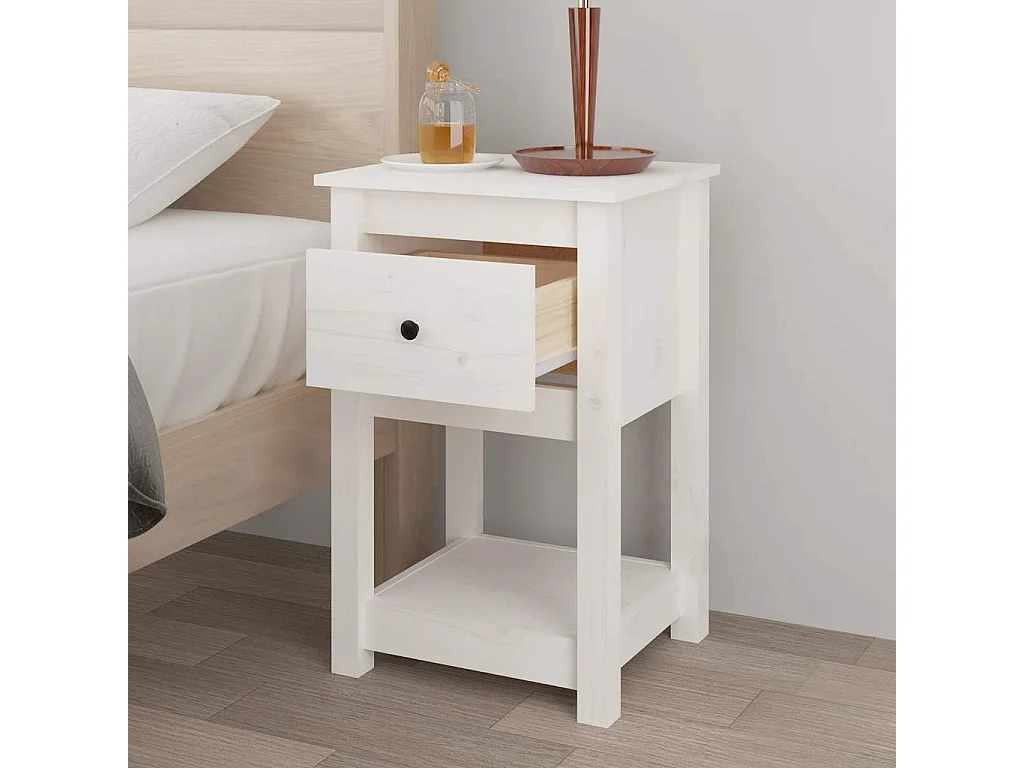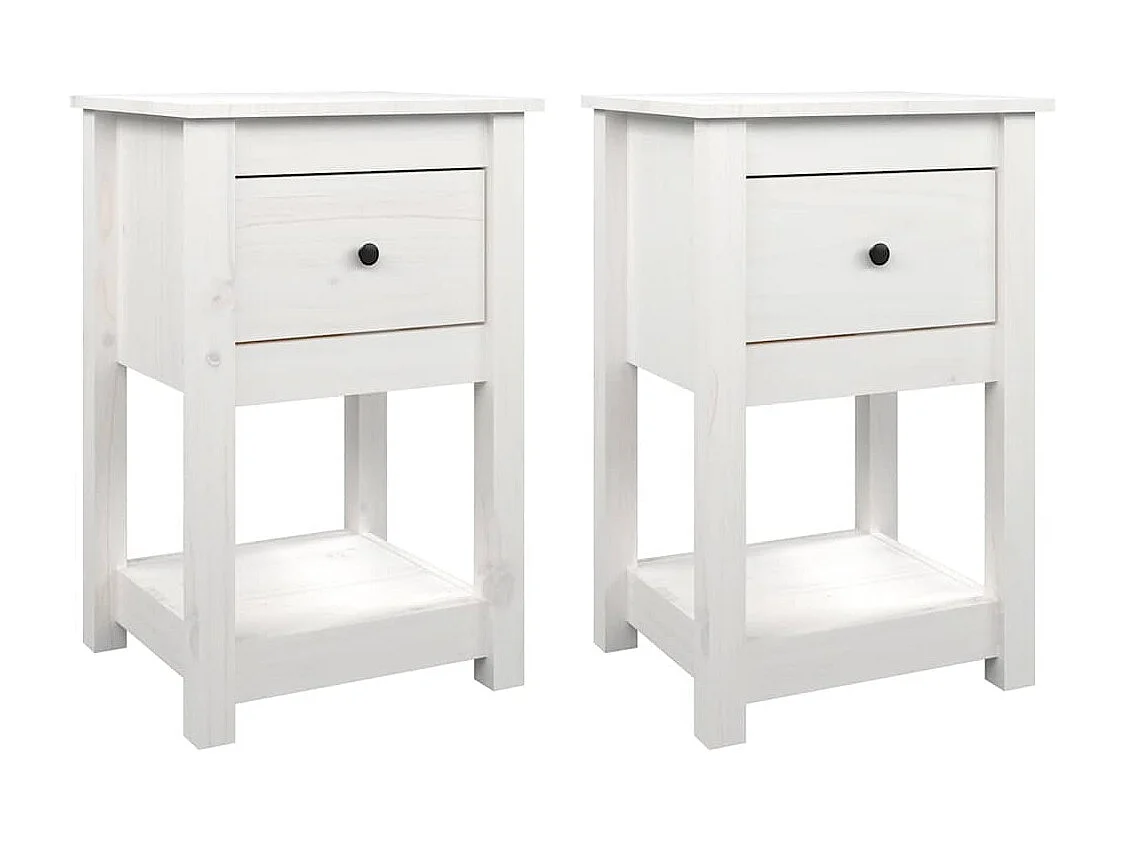 Nachttische 2 Stk. Weiß 40x35x61,5 cm Massivholz Kiefer