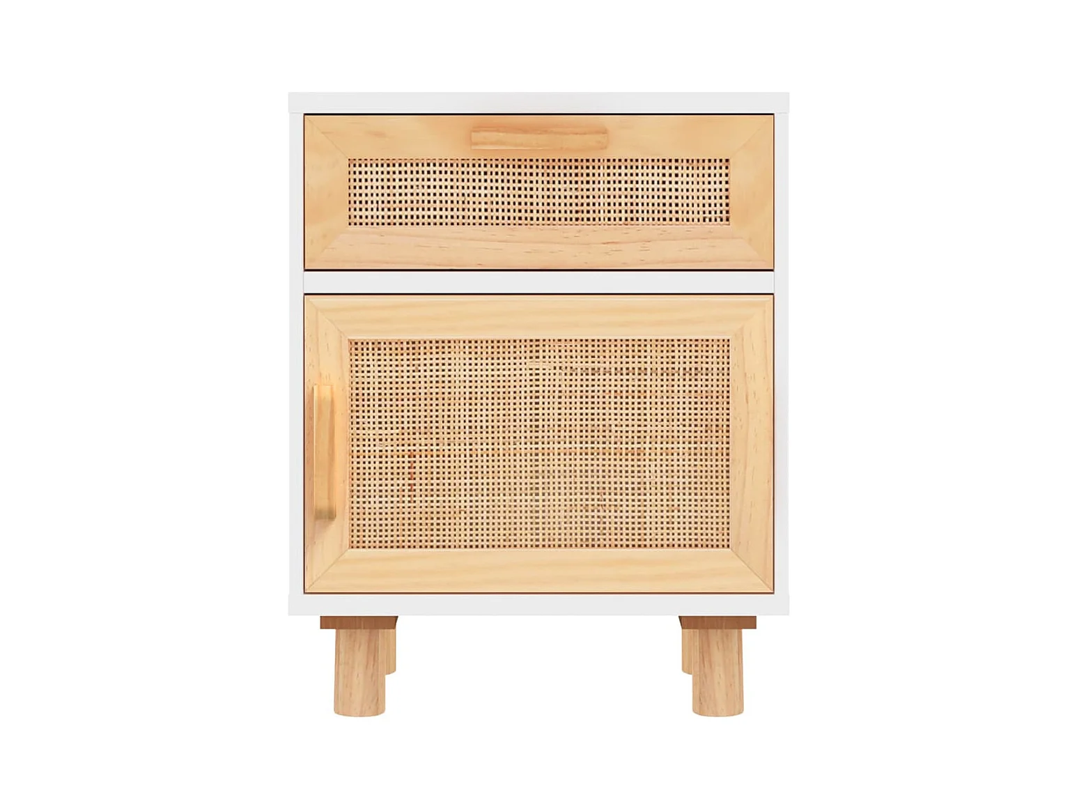 Nachttische 2 Stk. Weiß Massivholz Kiefer und Natur-Rattan