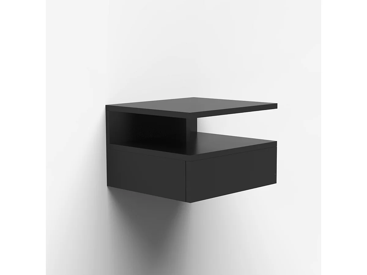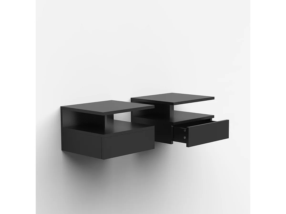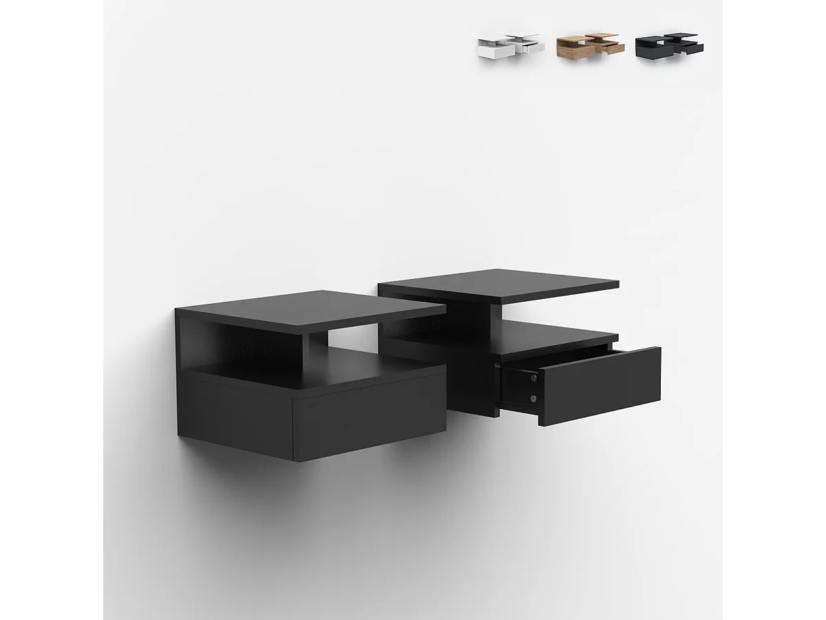 Nachttische 2er Set wandhängend mit Schublade für das Schlafzimmer Alabastro - Schwarz