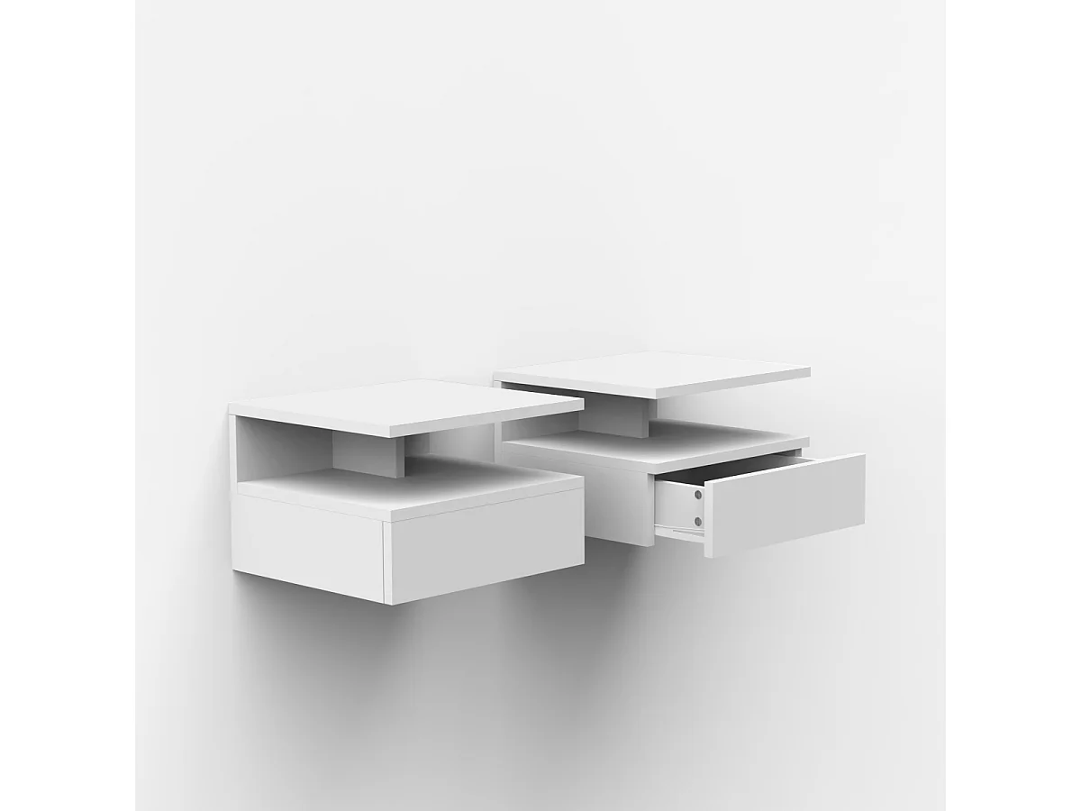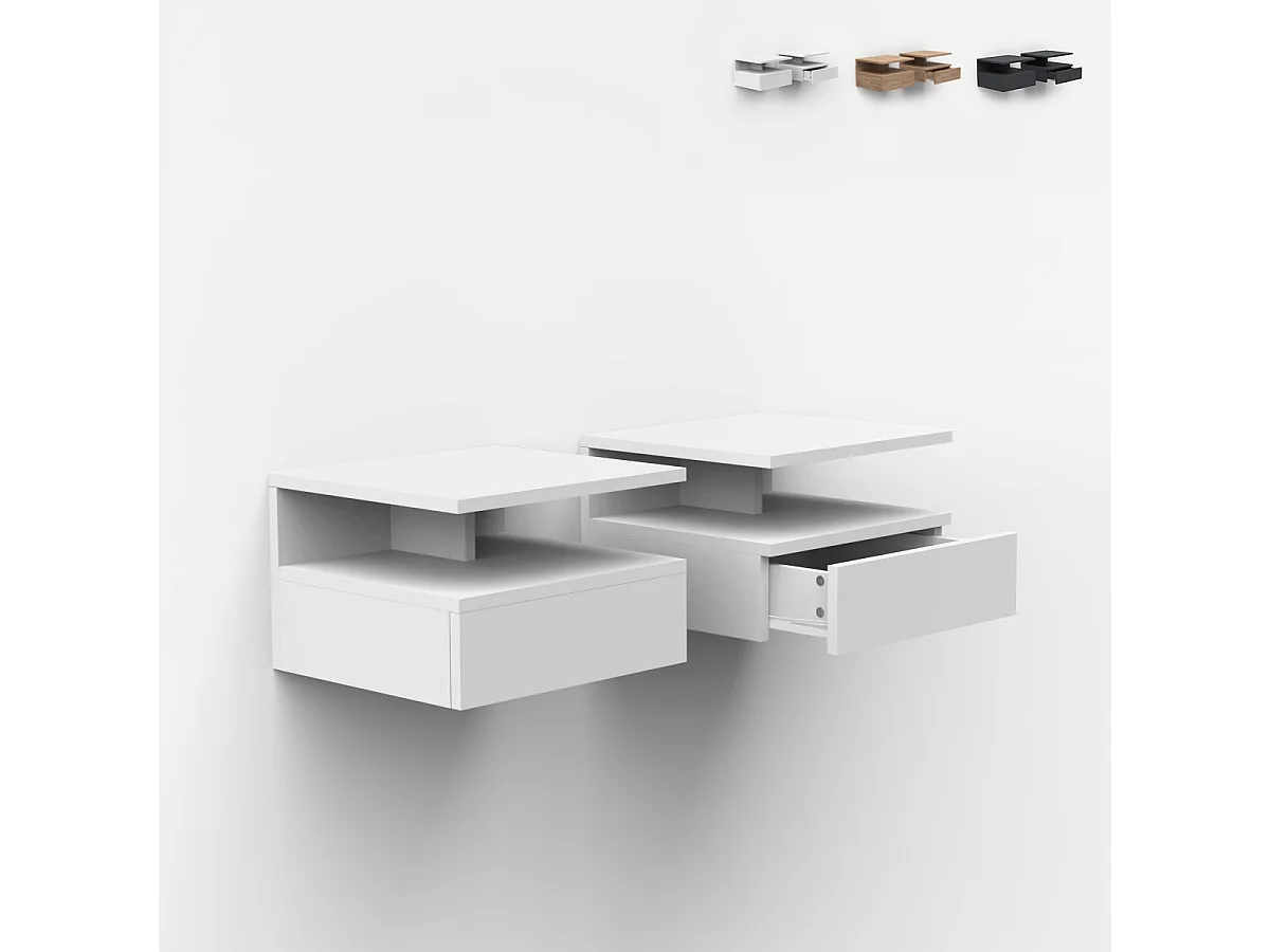 Nachttische 2er Set wandhängend mit Schublade für das Schlafzimmer Alabastro - Weiß