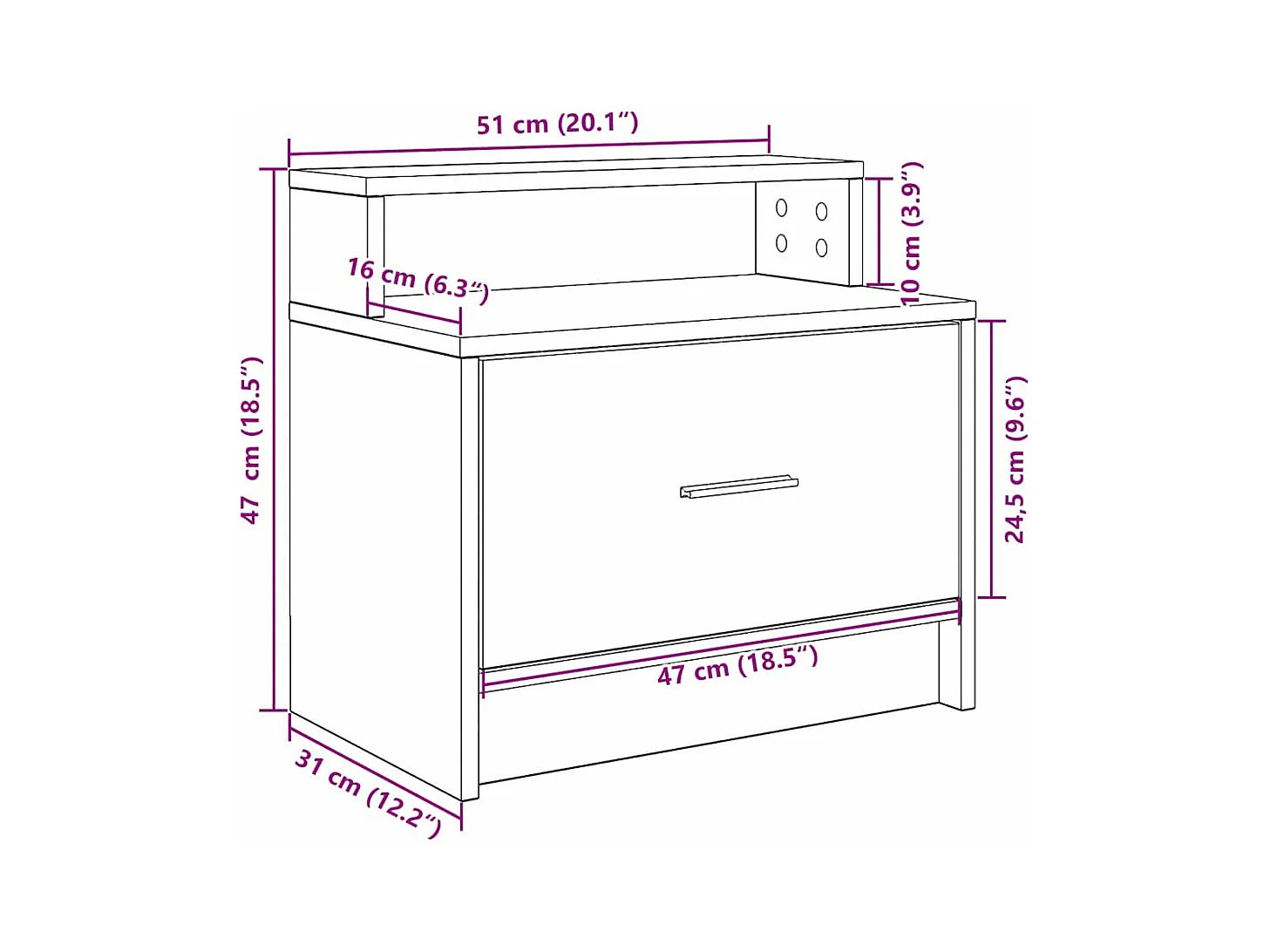 Nachttische mit Schublade 2Stk. Schwarz Eichen-Optik 51x31x47cm