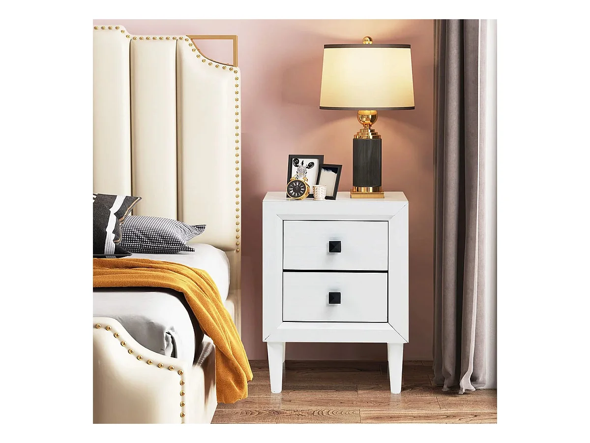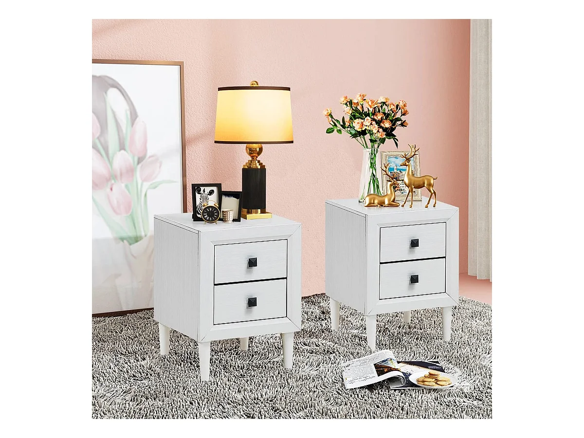 Nachttische Holz Beistelltisch mit 2 Schubladen Kaffeetisch modern Sofatisch Weiß