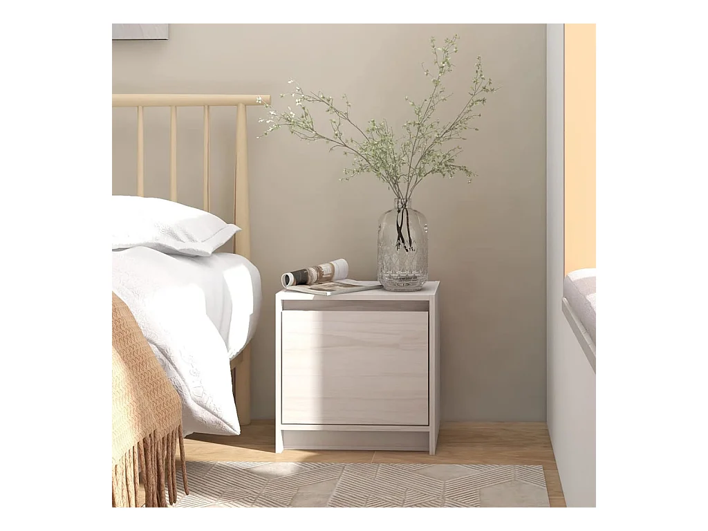 Nachttische Weiß Nachtschrank 40x30,5x40 cm Massivholz Kiefer -RN55382