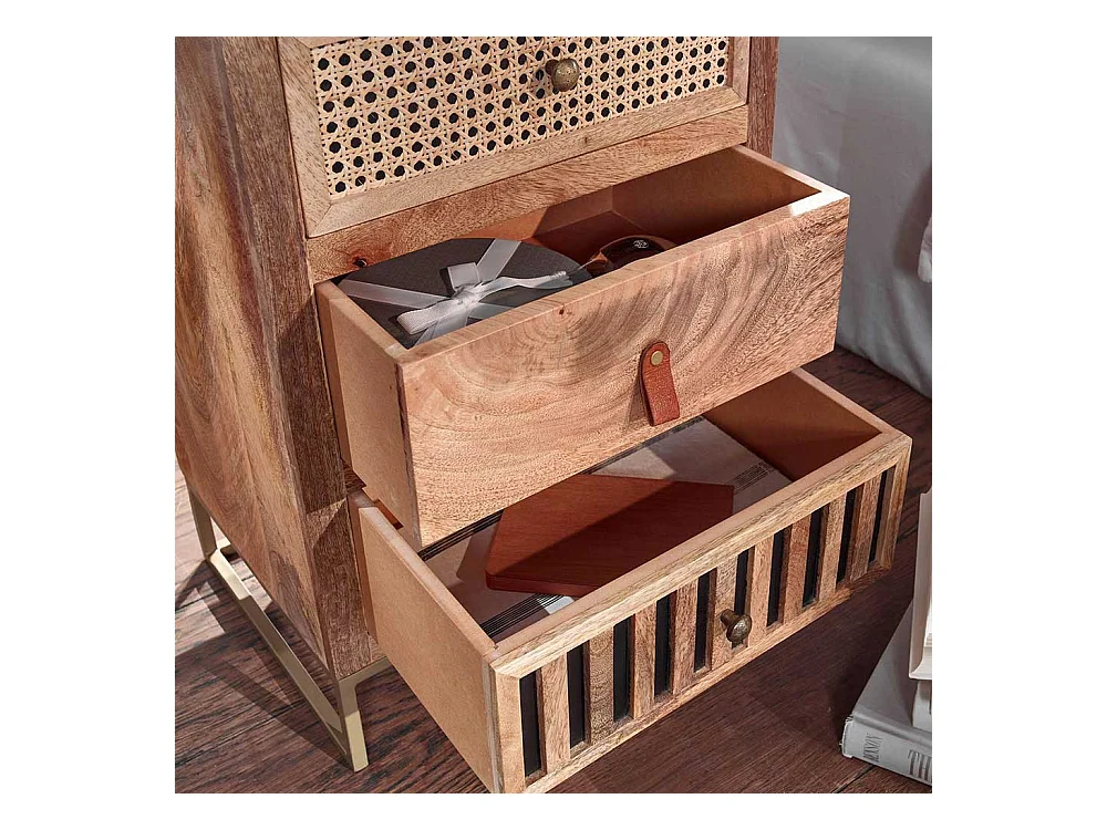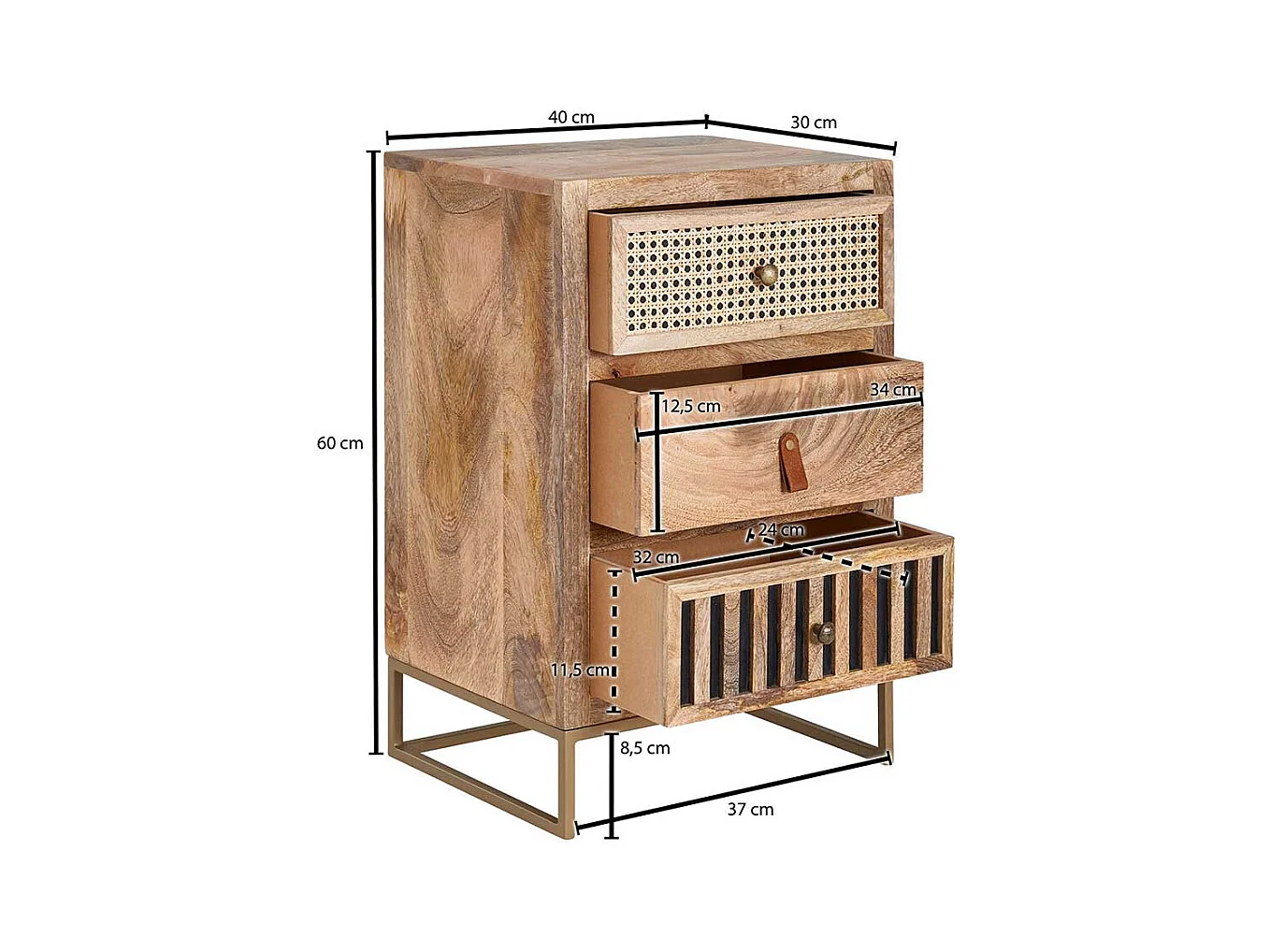 Nachttischschrank aus Mangobaum Massivholz drei Schubladen