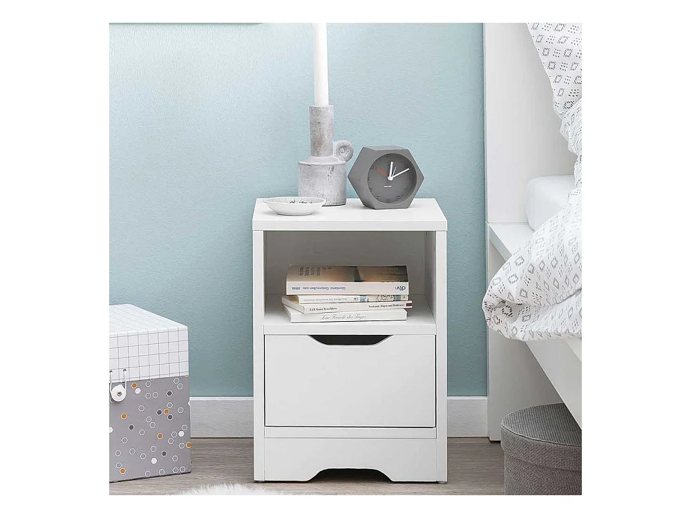 Nachttischschränkchen in Weiß einer Schublade und offenem Fach