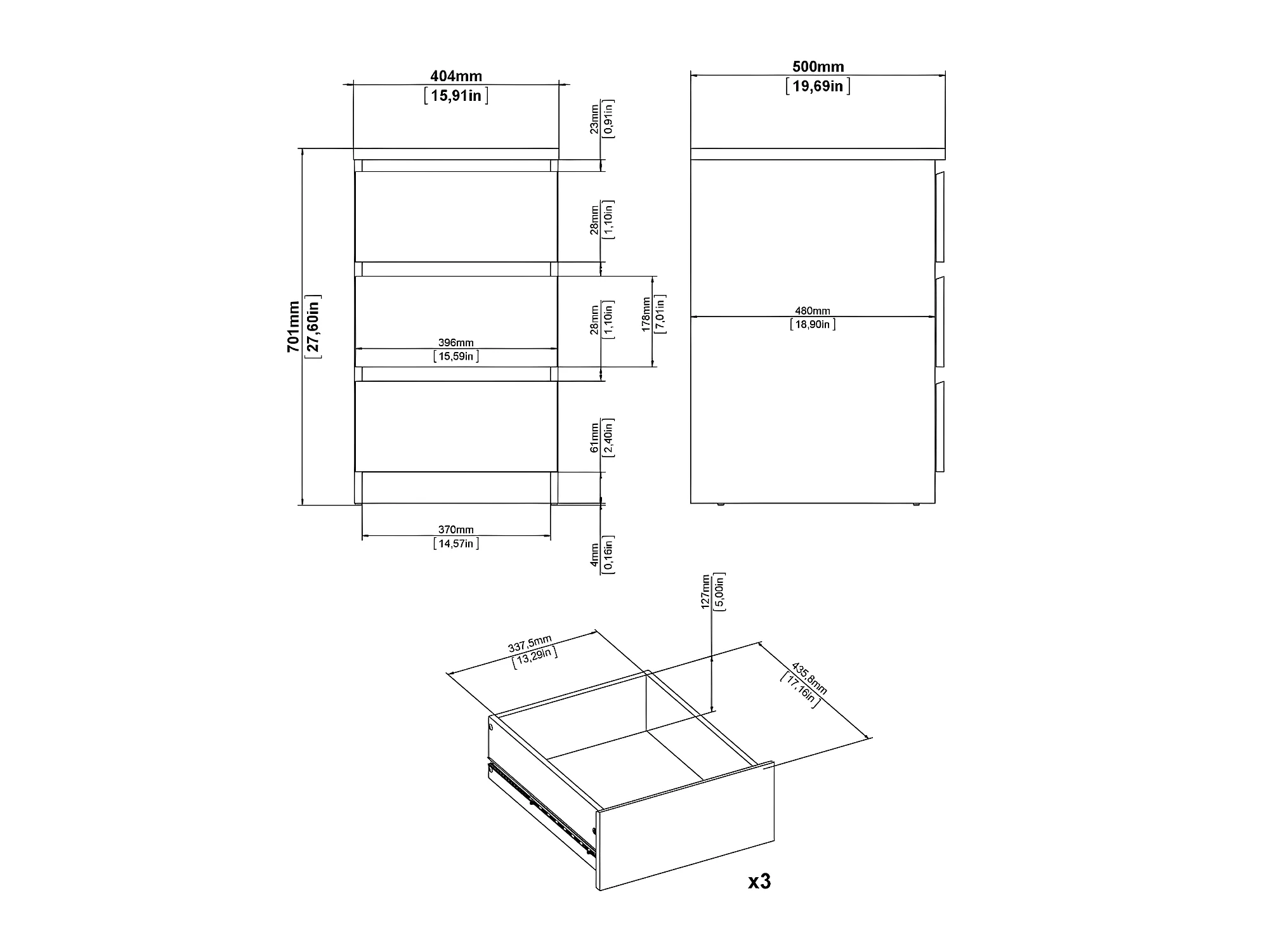 Nada Kommode niedrig und schmal 3 Schubladen, mattschwarz.