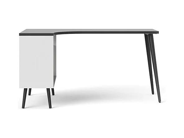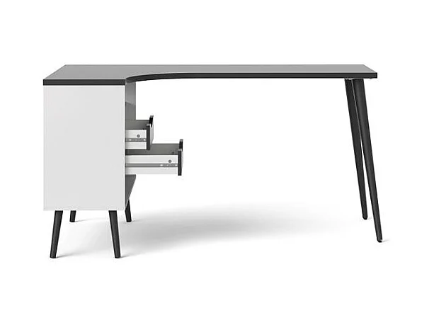 Napoli Eckschreibtisch mit 2 Schubladen und 3 Ablagen in weiß und matt schwarz.