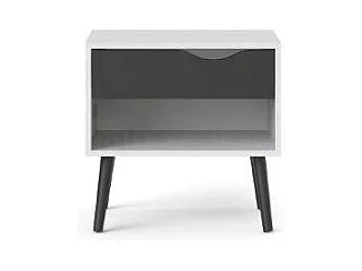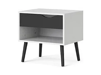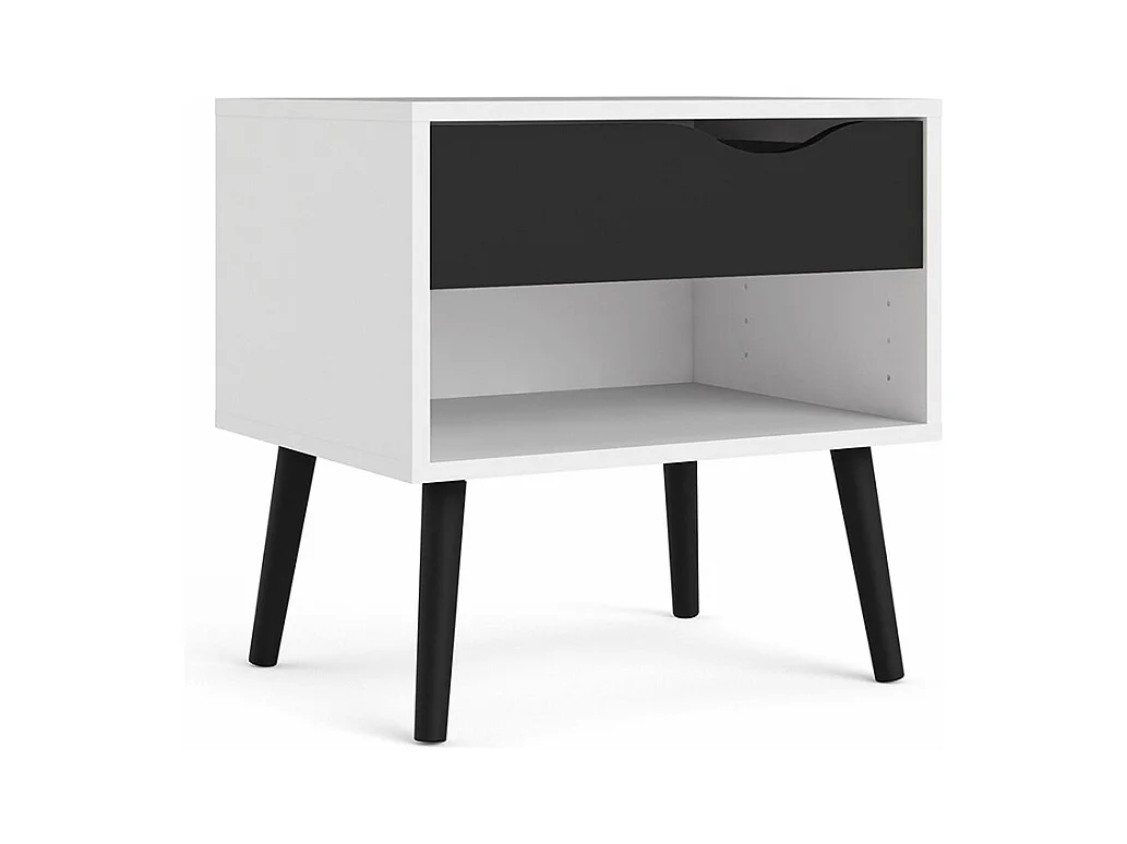 Napoli Nachttisch mit 1 Schublade und 1 Ablage in weiß und matt schwarz.