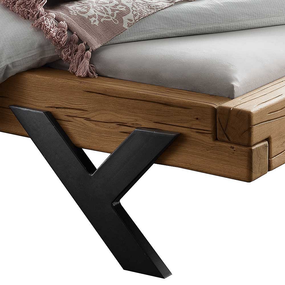 Naturholzbett massiv aus Wildeiche Y Gestell aus Metall