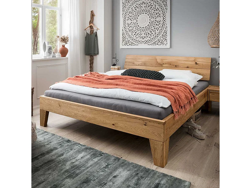 Naturholzbett Wildeiche Oberfläche geölt 45 cm Einstiegshöhe
