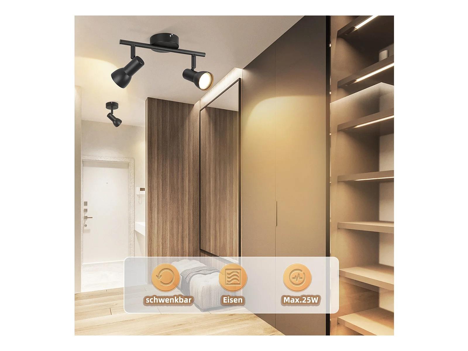 NETTLIFE 2-flammiger Deckenstrahler, schwarz, modern, GU10, Metall, 350° schwenkbar