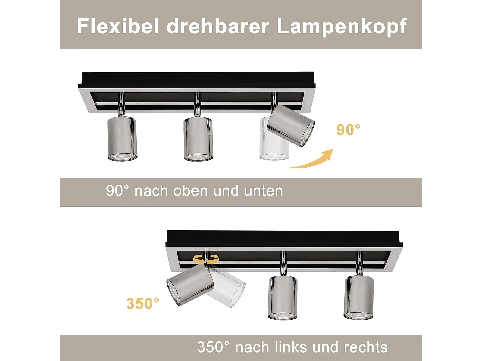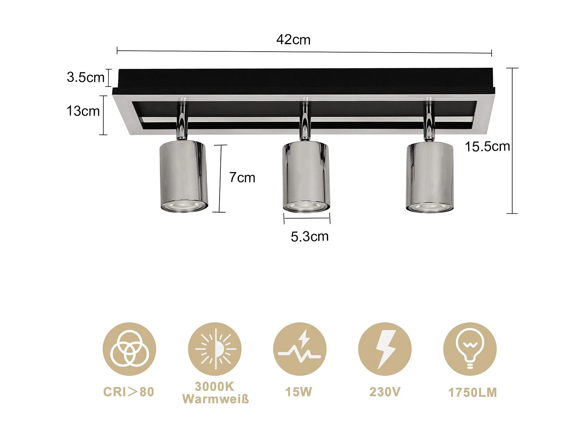 NETTLIFE 3-Flammiger LED Deckenstrahler, Schwarz, GU10, verstellbar, 15W, Warmweiß