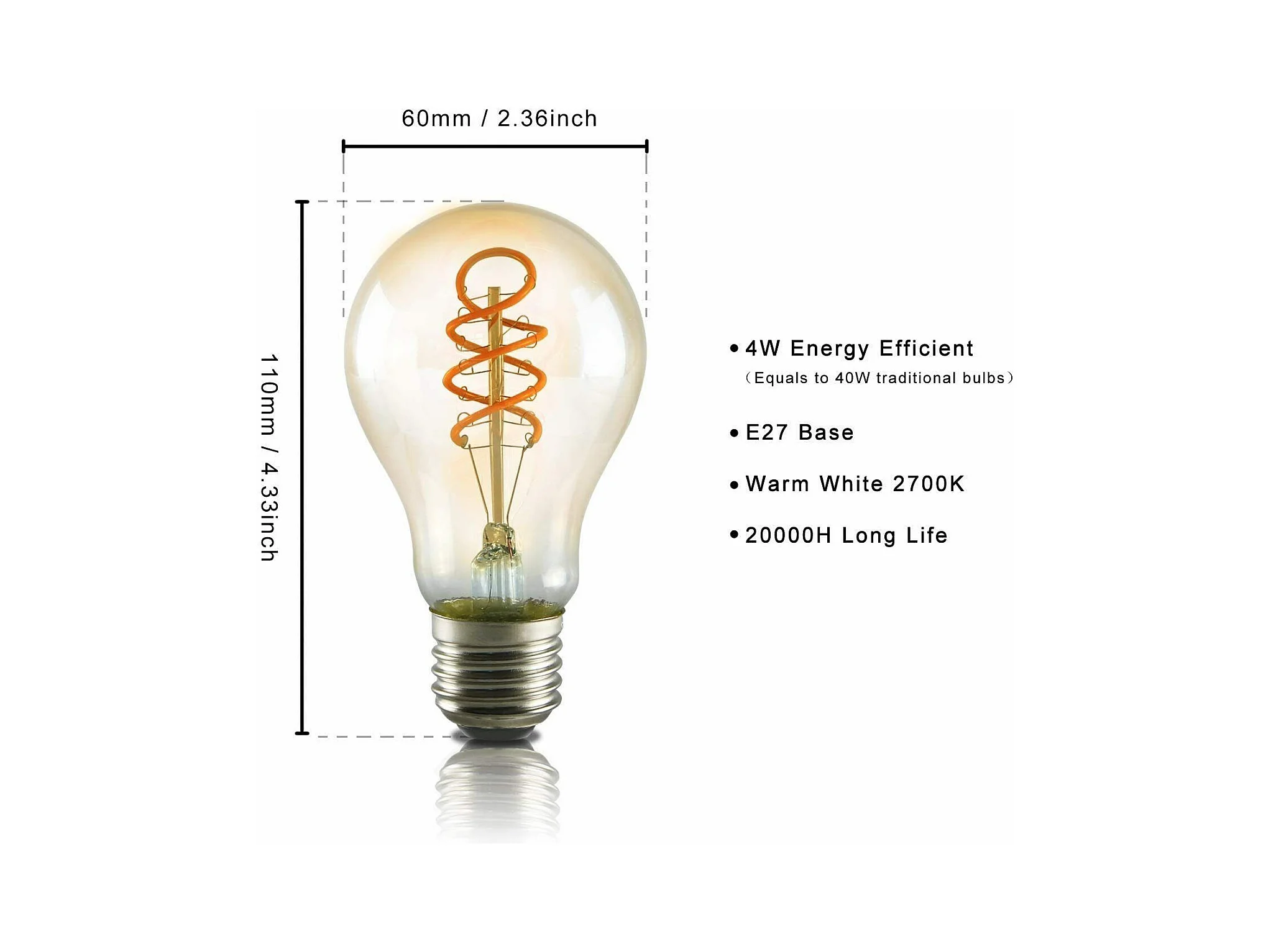 NETTLIFE 3er-Pack E27 LED-Lampen, Warmweiß, A60 Filament, 2200 K, Edison-Glühbirnen, 4 W, Retro-Vintage-Dekorationsglühbirnen