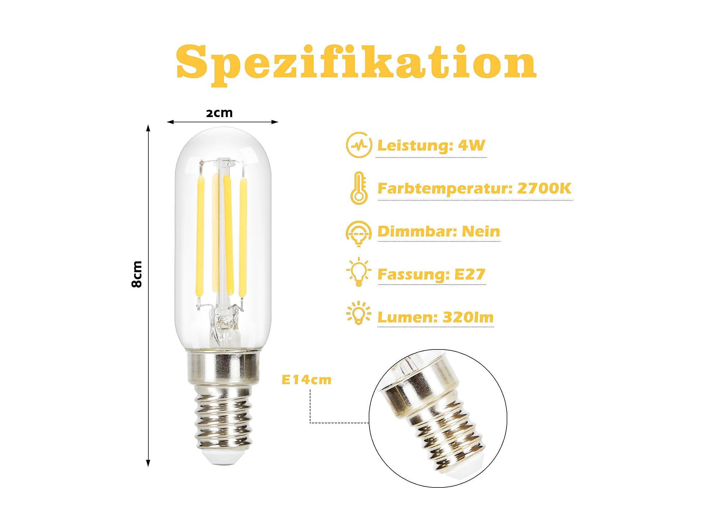 4er Set LED Leuchtmittel E14 Vintage Lampe T25 Warmweiß 2700k 4w Warmweiß