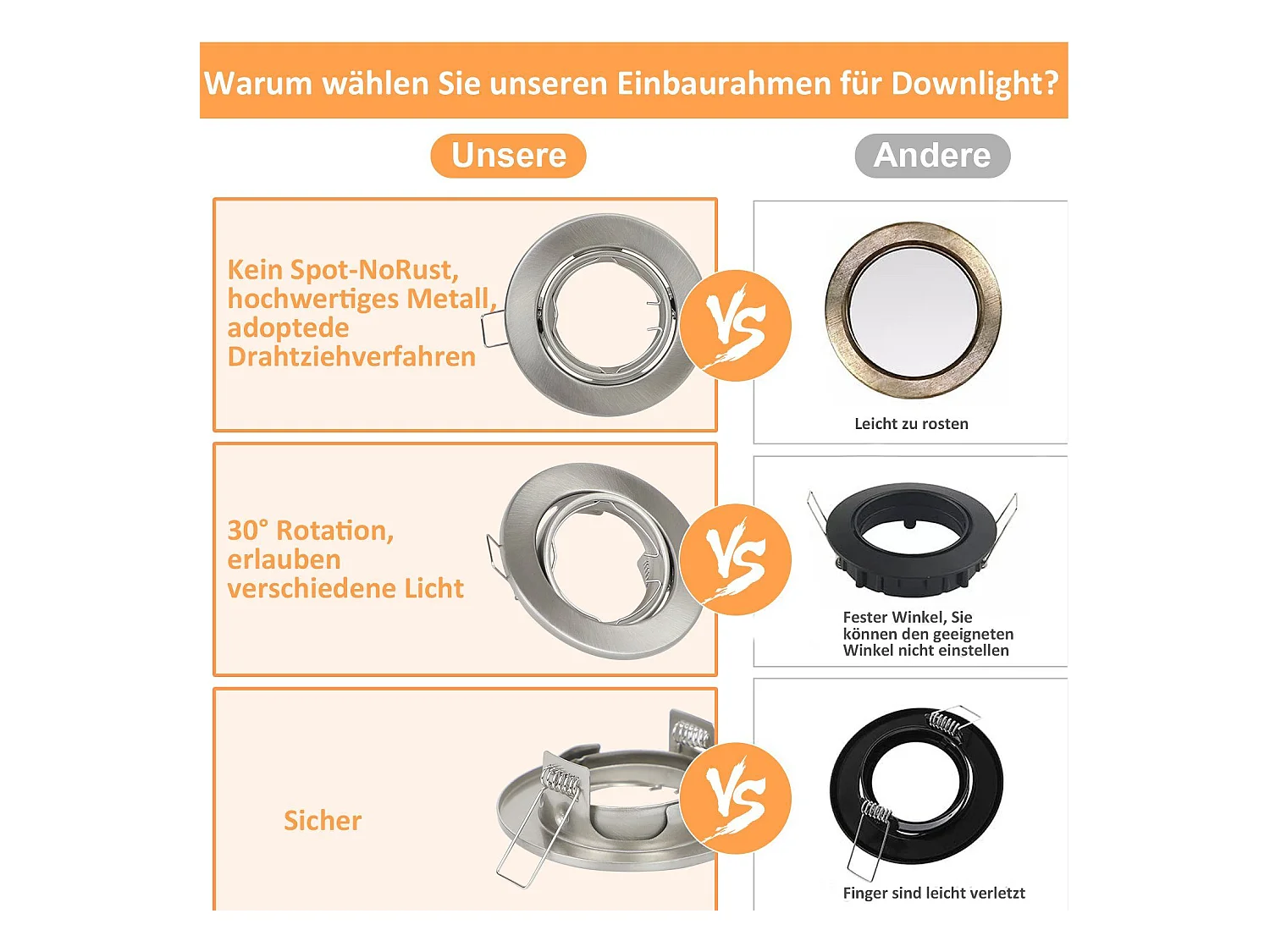 6er-Set Einbaustrahler Gu10 Sockel 230 V Rahmenleuchte 50 mm Aluminium 30° verstellbar Strahler