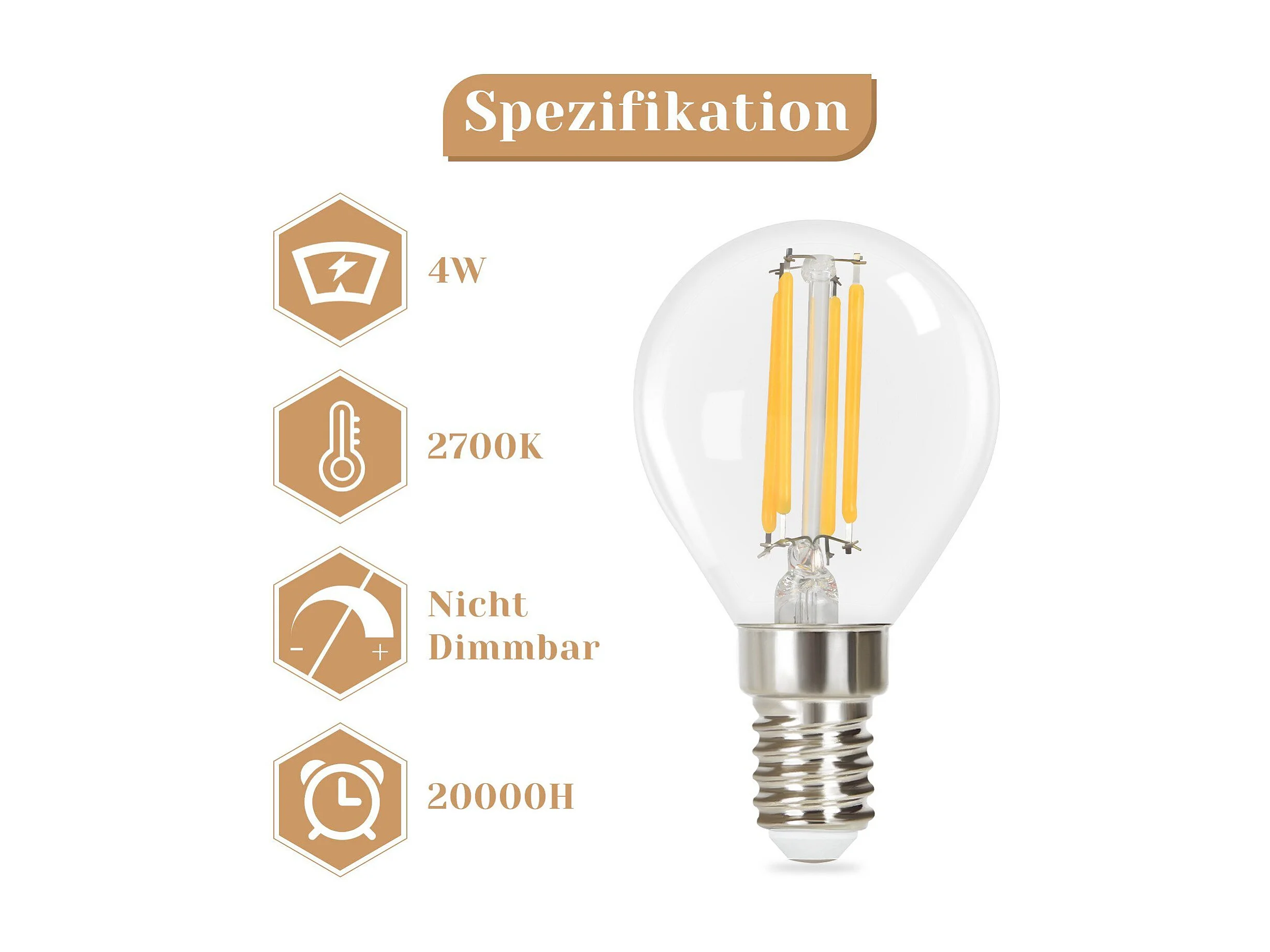 6 E14 Vintage LED-Lampen, Warmweiß, G45, 2700 K, 4 W, hochwertiges Glas