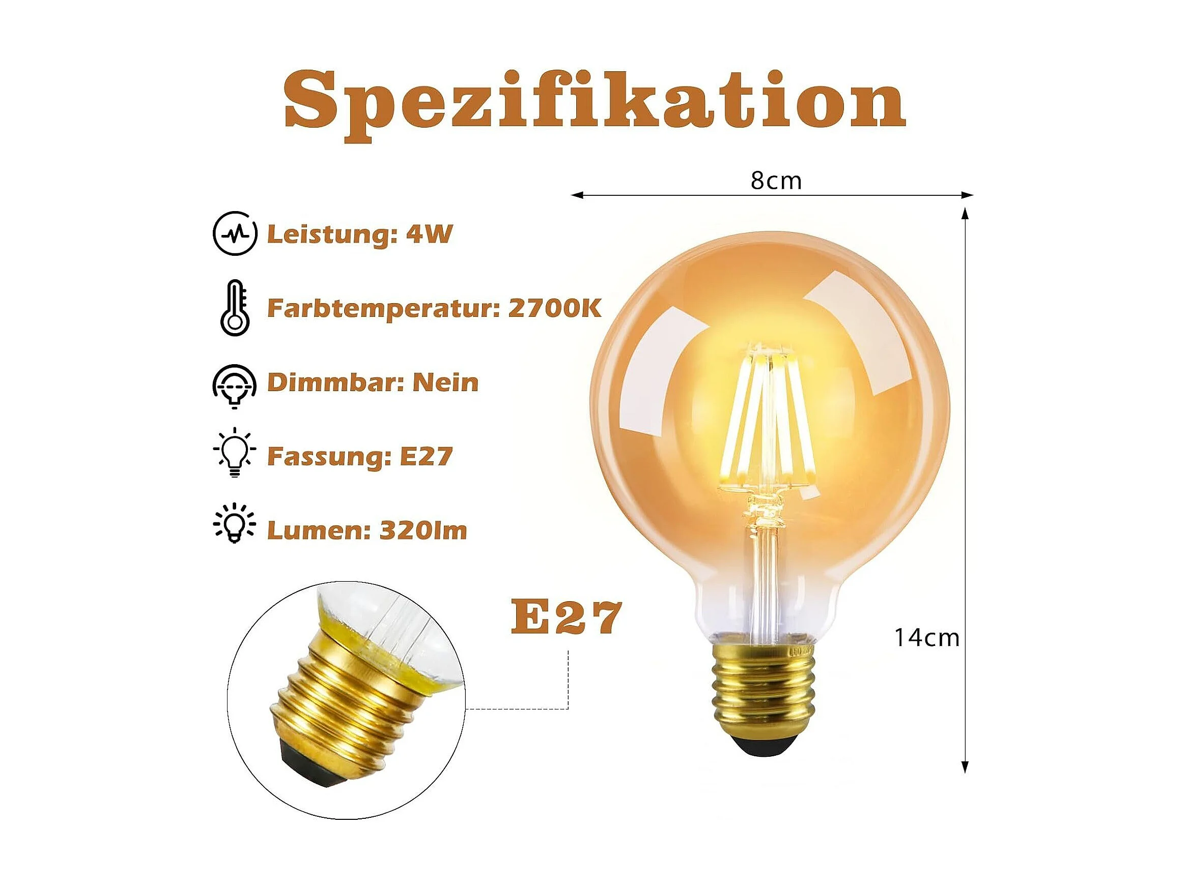 6er-Pack E27 LED-Lampen Vintage Lampe Warmweiß G80 2700 K 4 W Edison Ideal