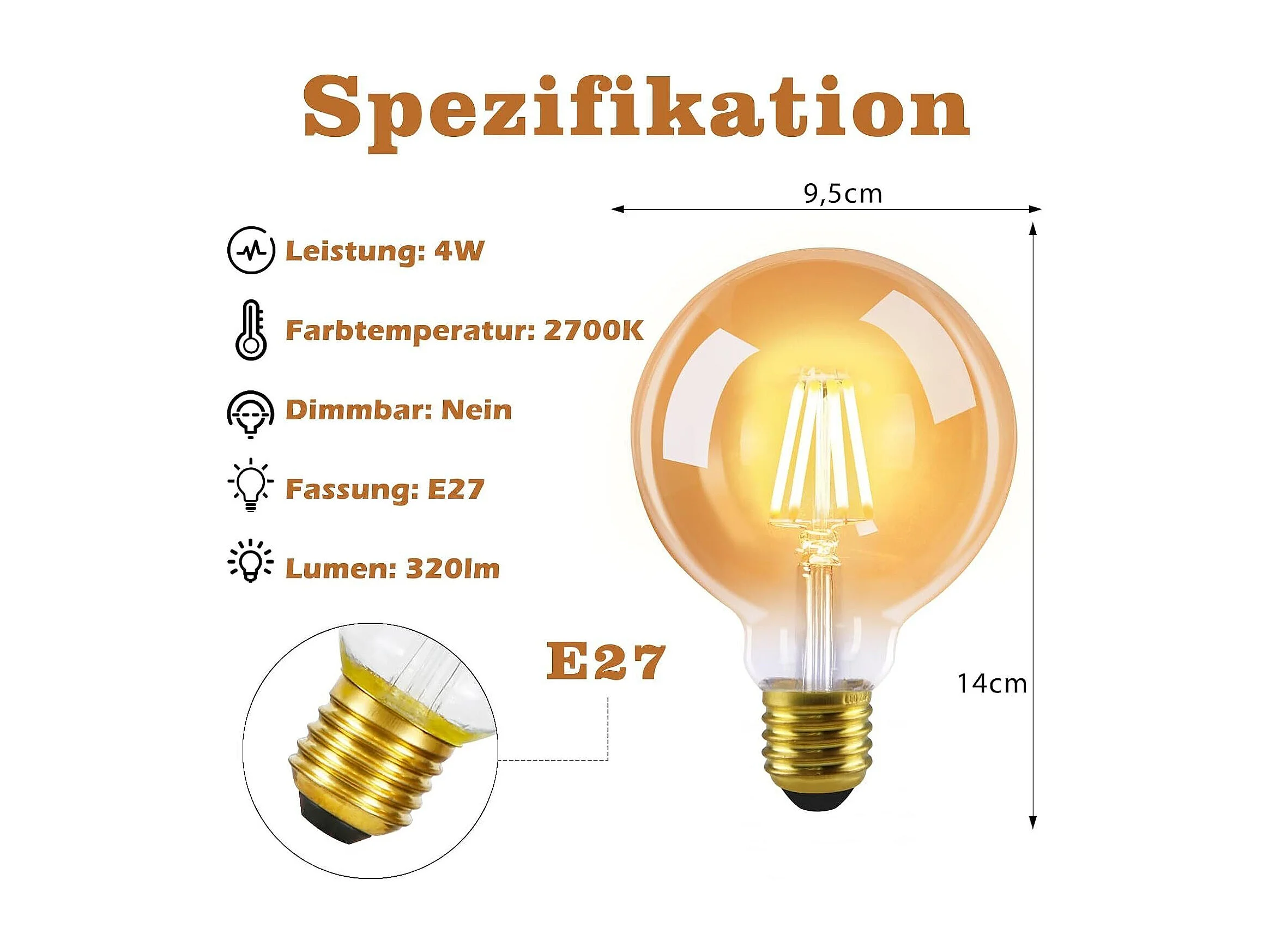 6er-Pack E27 LED-Lampen Vintage Filamentlampe Warmweiß G95 2700 K 4 W