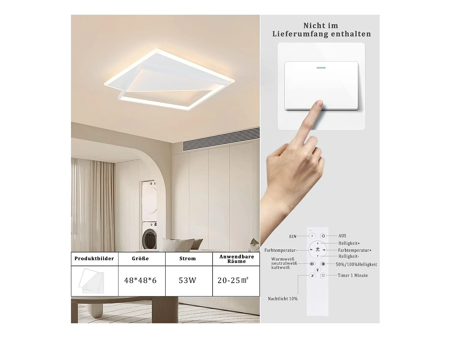 LED Deckenleuchte 48cm 53w Schlafzimmerlampe Moderne Lampen Wohnzimmer Weiß Design