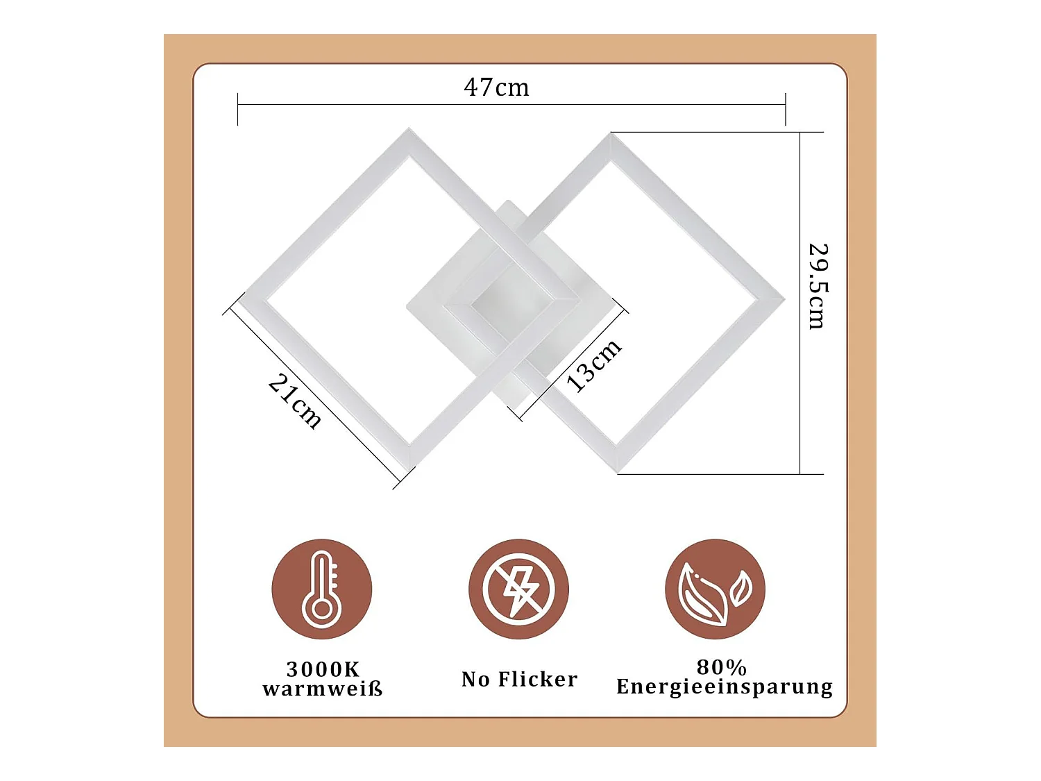 Moderne Küchen LED Deckenleuchte 24W Design Lampe Warmweiß Lampe Flurlampe Eckig Weiß