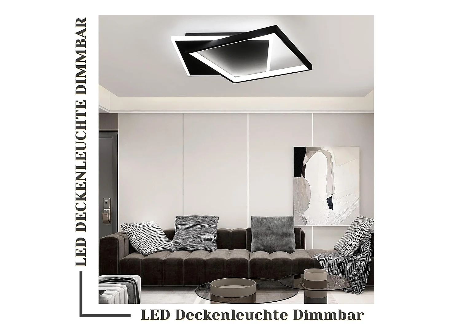 NETTLIFE LED-Deckenleuchte Schlafzimmer, schwarze Lampe, dimmbar, 42 W, moderne Fernbedienung, quadratische Acryl-Deckenlampe für Wohnzimmer, Küche, Esszimmer